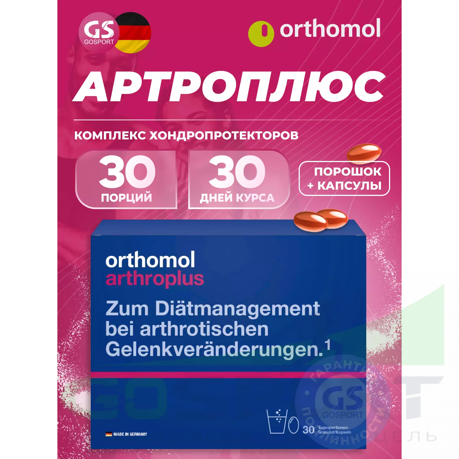Суточная порция Ортомол Артро плюс: Упаковка Orthomol Arthro plus капсулы + порошок (30 дней): содержит 60 капсул и 30 пакетиков с порошком.
