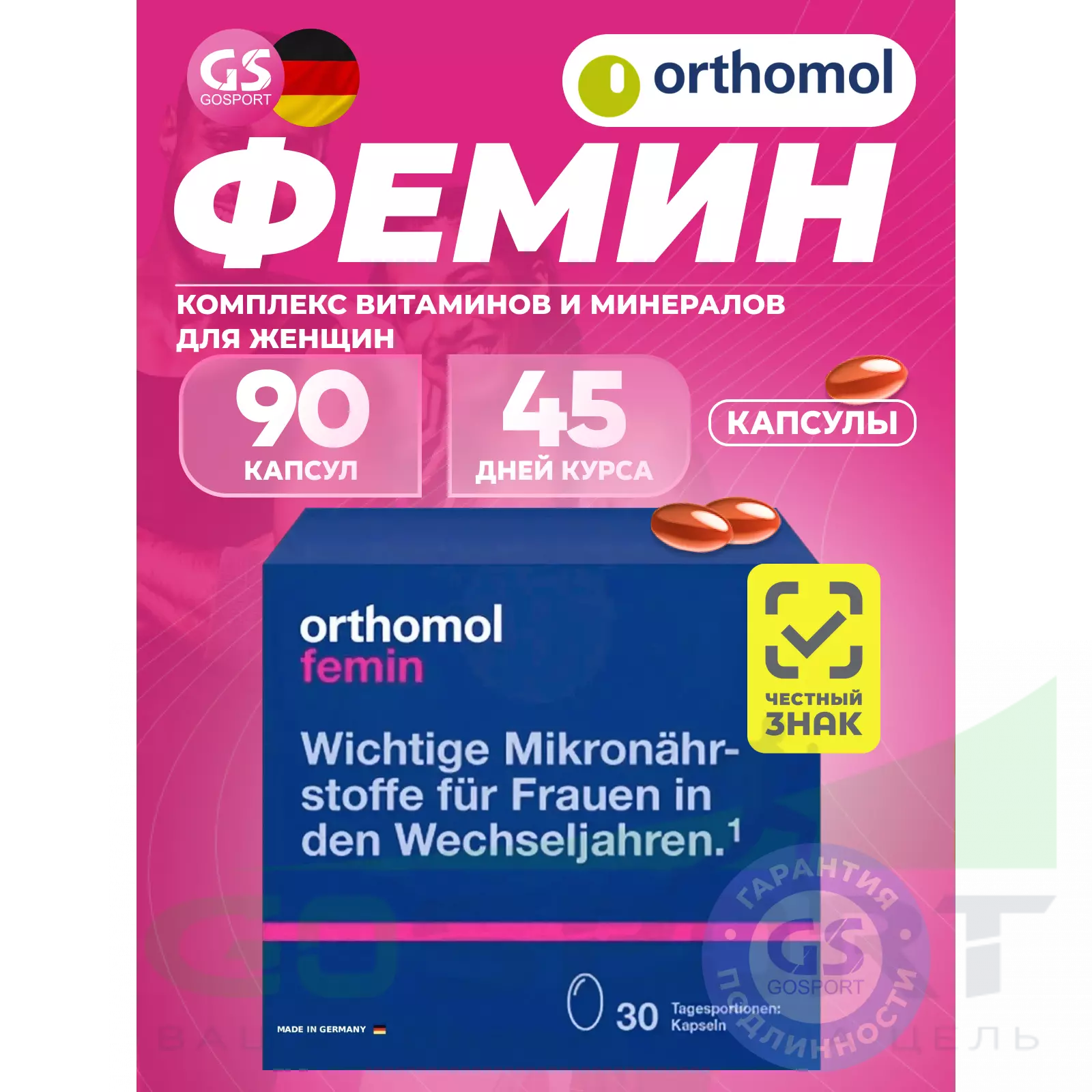 Ортомол Фемин это – специальный комплекс витаминов, микроэлементов и питательных веществ для женщин, переживающих период менопаузы. Ортомол Фемин содержит необходимые питательные вещества для кожи, волос и ногтей. А так же - биофлавоноиды сои, лигнаны льняного семени, незаменимые жирные кислоты и коэнзим Q10 – вещества активно борющиеся с проявлениями менопаузы.
