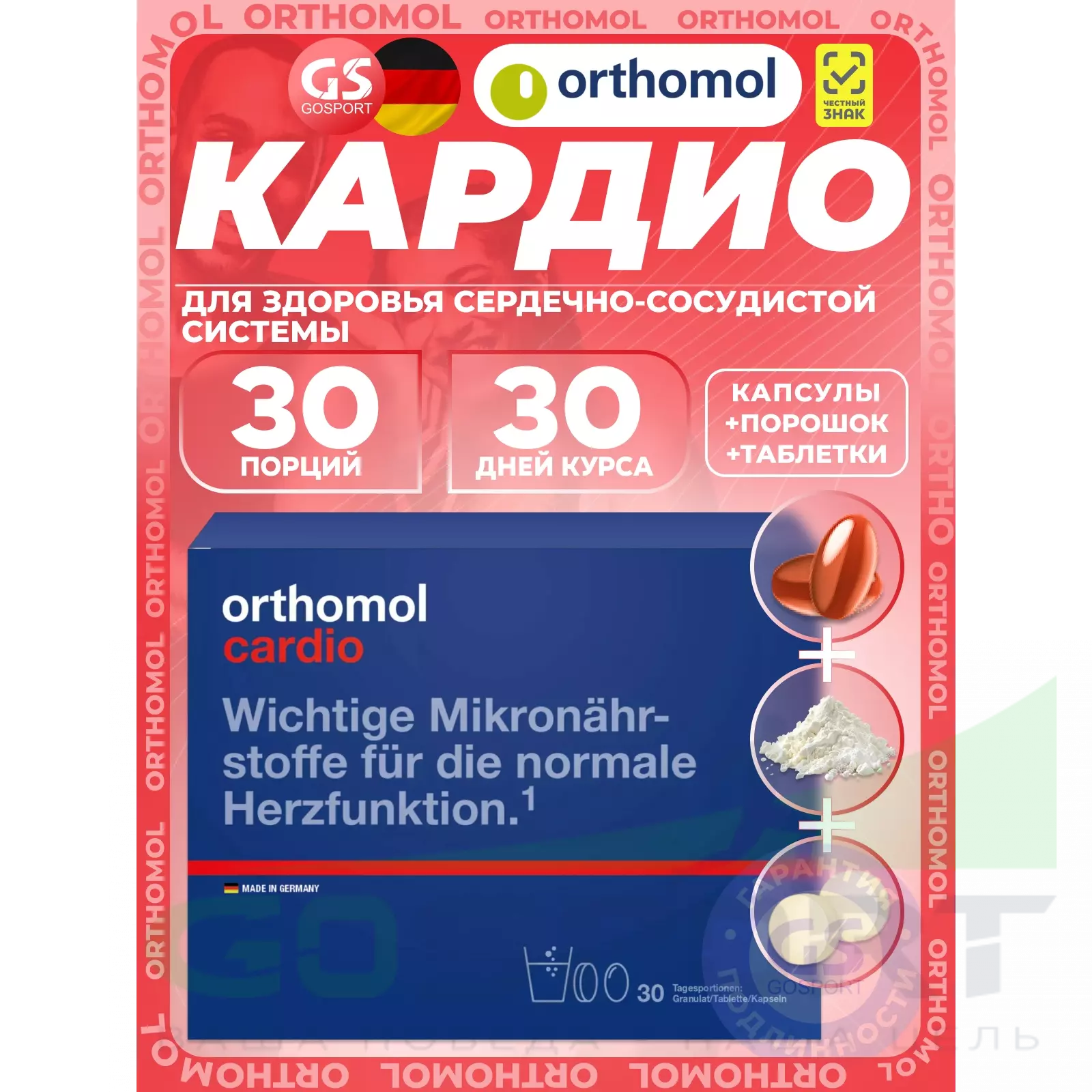 Orthomol Cardio ( порош + табл + капс 30 дн) – ортомолекулярный препарат для сердечно-сосудистой системы, являющийся антиоксидантом, который повышает иммунитет, укрепляет стенки сосудов, нормализует циркуляцию крови, препятствует образованию тромбов. Обеспечивает полноценное насыщение организма микроэлементами. Cardio рекомендован как комплексное лечение инфаркта миокарда, при лечении инсульта, повышенного или пониженного давления, для лечения сосудов, лечения венозных заболеваний (профилактика и лечение варикоза). Кардио рекомендован при лечении артериосклероза, ишемической болезни. Форма выпуска: Порошок +табл.+капс. - разделена на отдельные порции. Растворяется в 100-150 мл воды или сока. Способствует более активному усвоению микроэлементов.