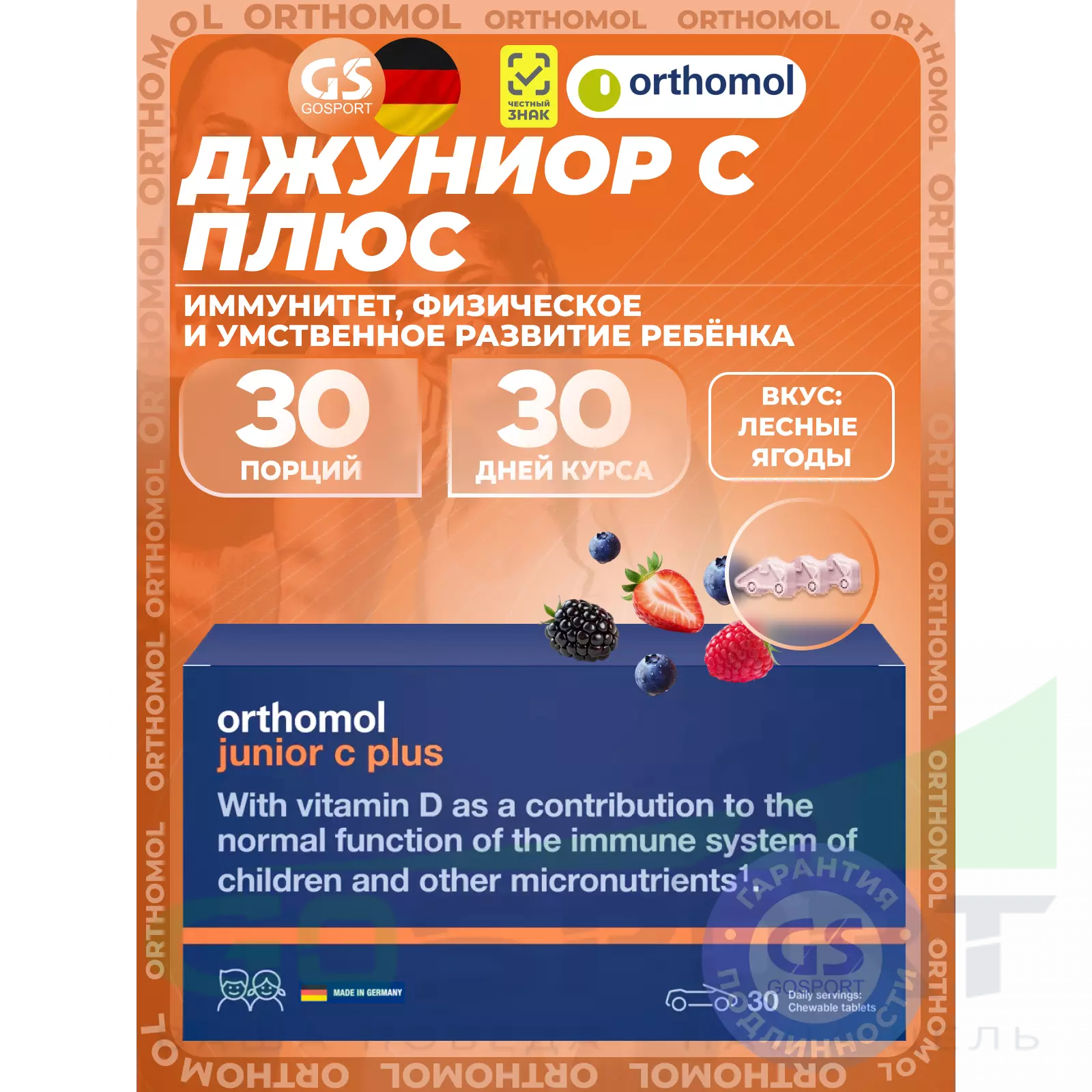 Orthomol Junior C plus курс 30 дней, Лесные ягоды — (Ортомоль Джуниор С плюс), Детское здоровье