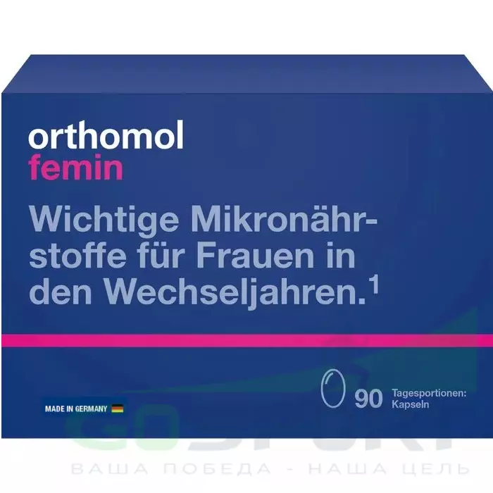 Ортомол Фемин это – специальный комплекс витаминов, микроэлементов и питательных веществ для женщин, переживающих период менопаузы. Ортомол Фемин содержит необходимые питательные вещества для кожи, волос и ногтей. А так же - биофлавоноиды сои, лигнаны льняного семени, незаменимые жирные кислоты и коэнзим Q10 – вещества активно борющиеся с проявлениями менопаузы.