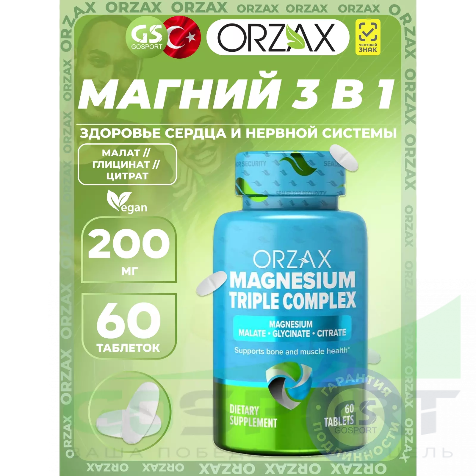 Orzax Magnesium Triple Complex 200 mg 60 таблеток — Здоровье сердца и нервной системы