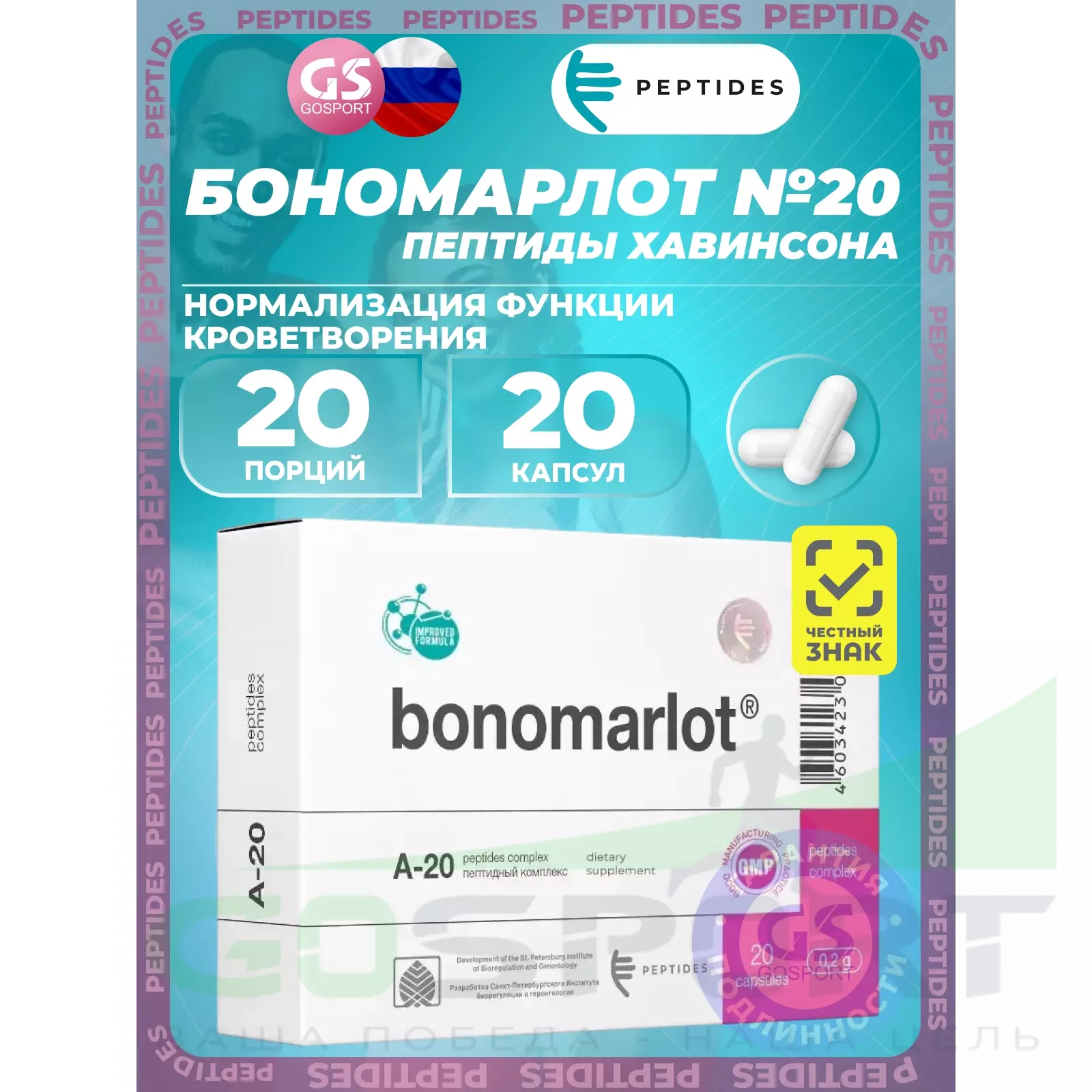 Суточная доза содержит: (2 капсулы), 20 мг пептидного комплекса А-20.