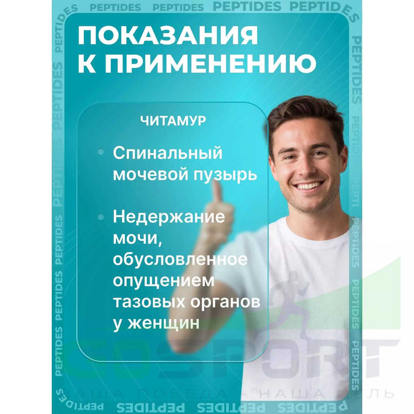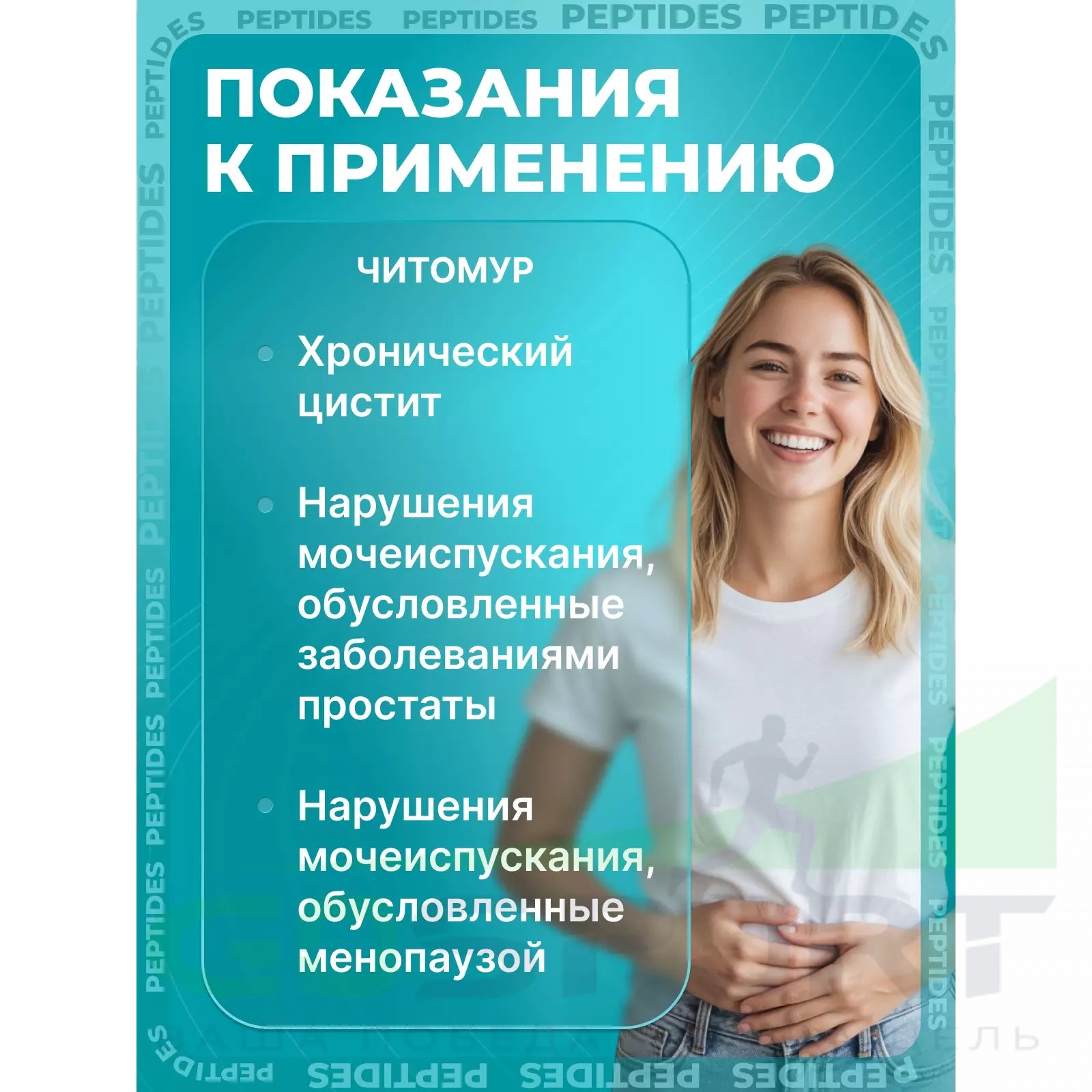Читомур - комплекс пептидных фракций, полученных из мочевого пузыря молодых животных. Выделенные пептиды обладают избирательным действием на клетки стенки мочевого пузыря, нормализуют метаболизм в клетках стенки мочевого пузыря, стимулируют мышечный тонус детрузора или сфинктера.