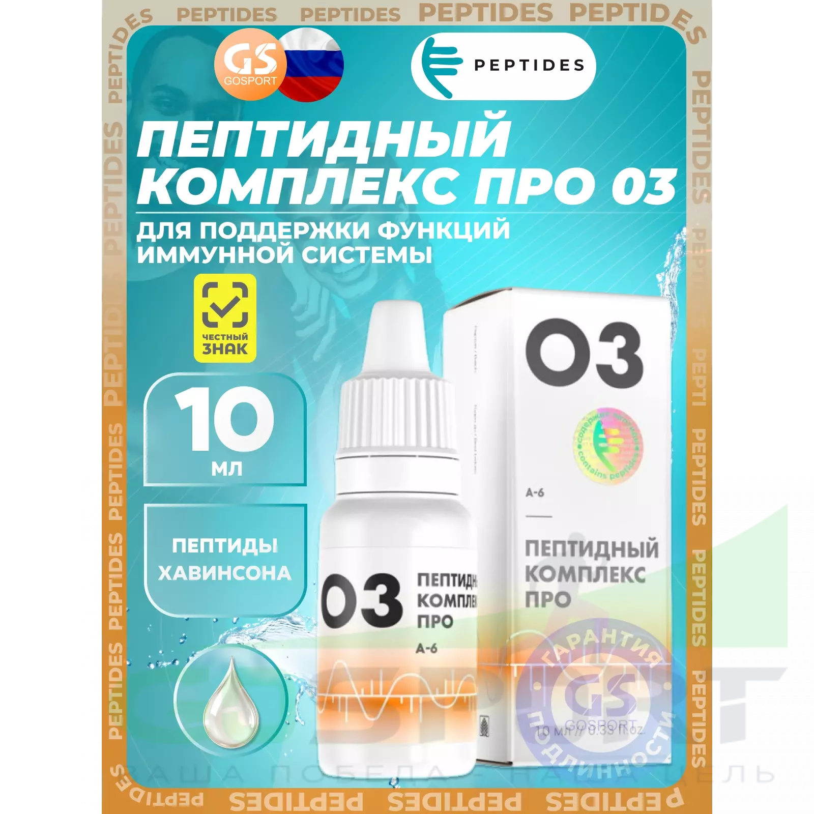 Пептидный комплекс ПРО 03 — пептидный комплекс для поддержки и восстановления функций иммунной системы на основе натуральных пептидов тимуса (A-6). Формула направлена на нормализацию иммунного ответа, улучшение взаимодействия иммунокомпетентных клеток и поддержку синтеза антител. Комплекс способствует коррекции нарушений иммунитета, поддерживает процессы регенерации тканей и помогает повышать общую устойчивость организма к внешним и внутренним нагрузкам.