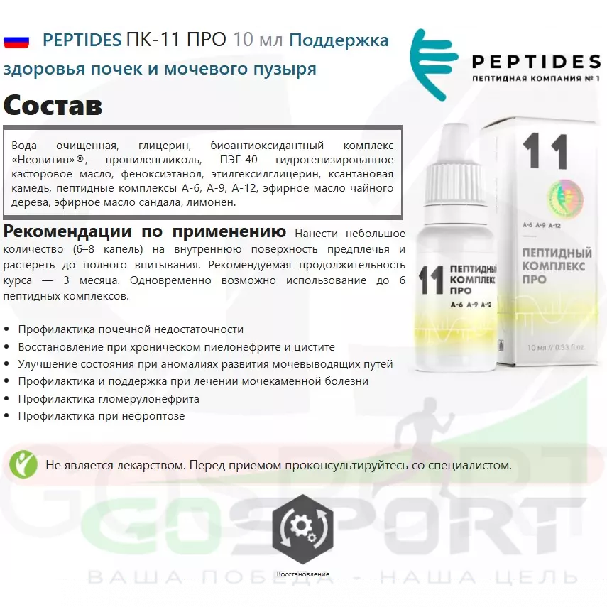 PEPTIDES Пептидный комплекс 11 ПРО 10 мл — Поддержка здоровья почек и мочевого пузыря