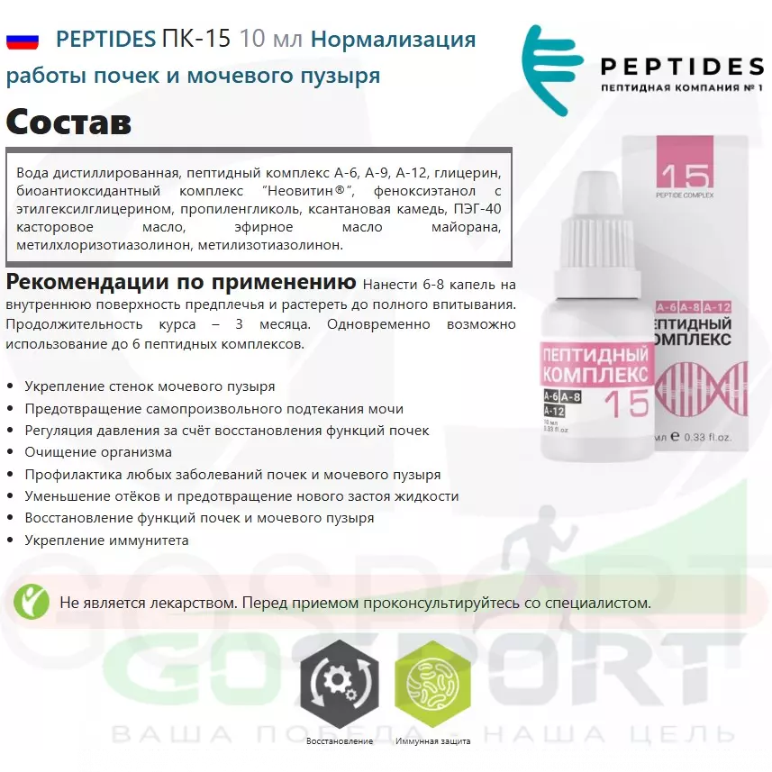 Пептидный комплекс для почек и мочевого пузыря. Содержит пептиды – тимуса, почек, мочевого пузыря.