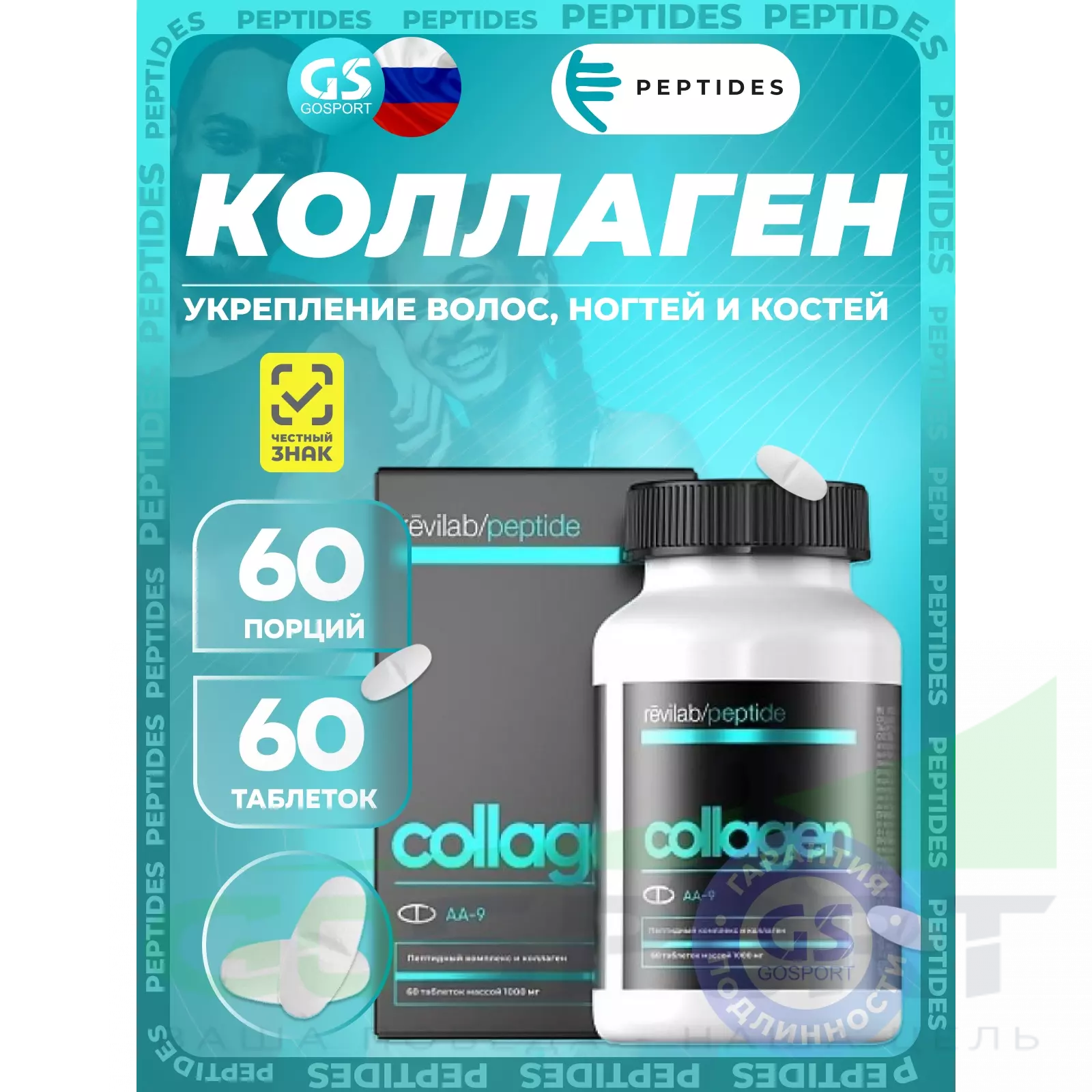 Revilab Collagen, пептиды рыбный 60 таблеток