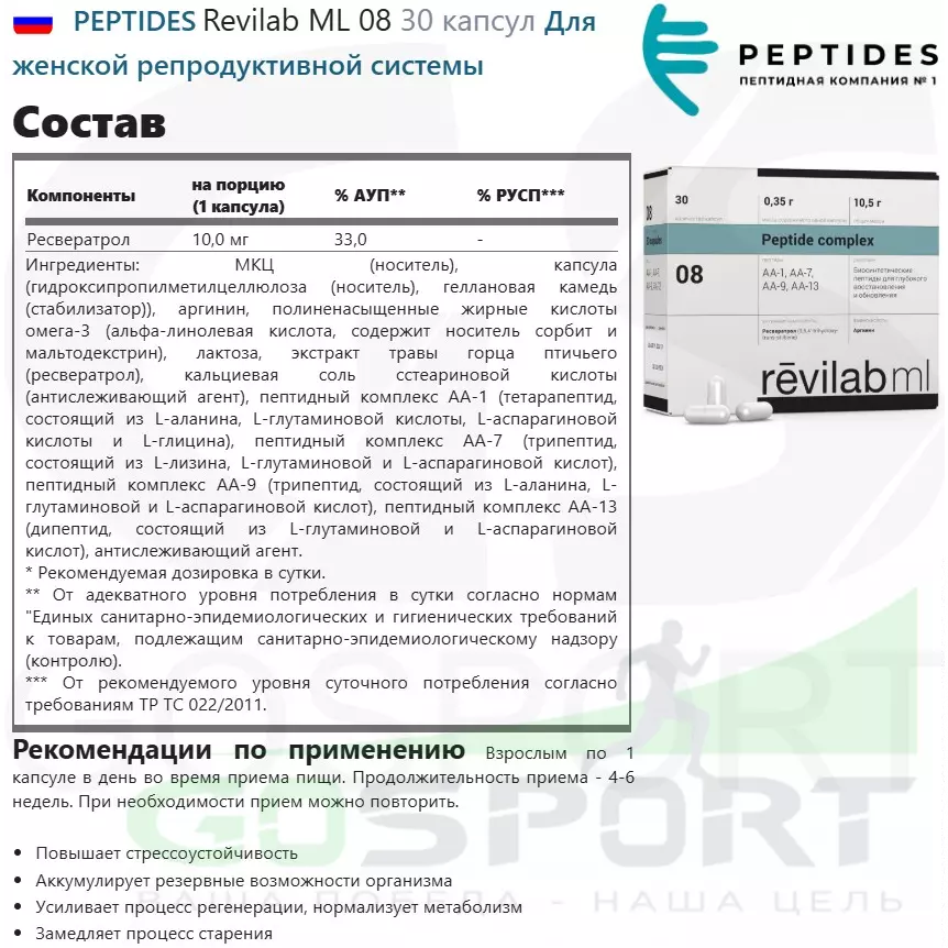 Состав PEPTIDES Revilab ML 08