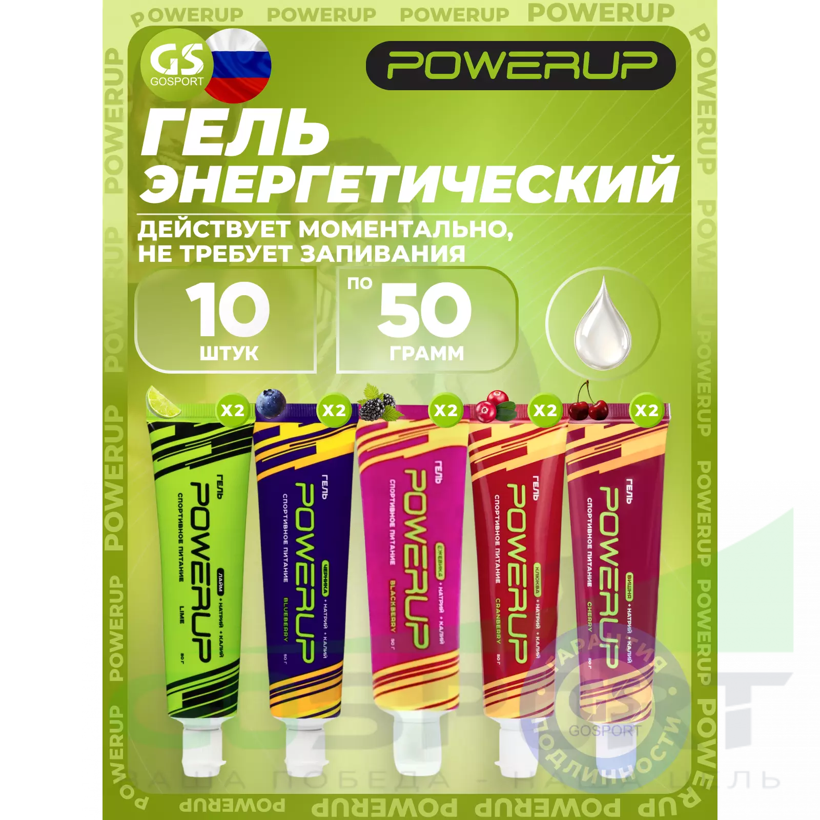 Powerup Набор гелей с углеводами и электролитами 10 х 50 г, Микс — Энергия и поддержание выносливости