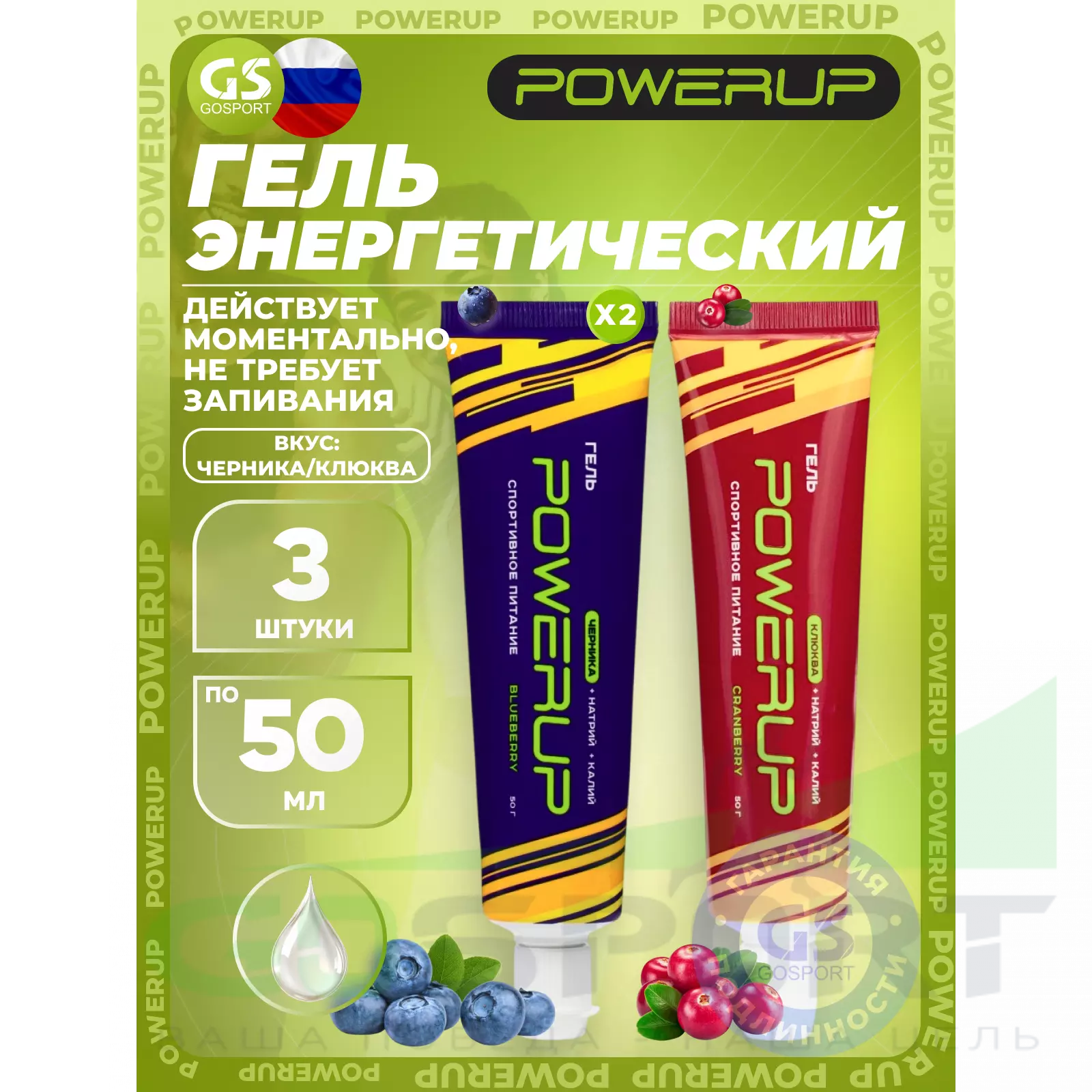 Powerup Гель 3 x 50 г, Микс — Энергия и поддержание выносливости