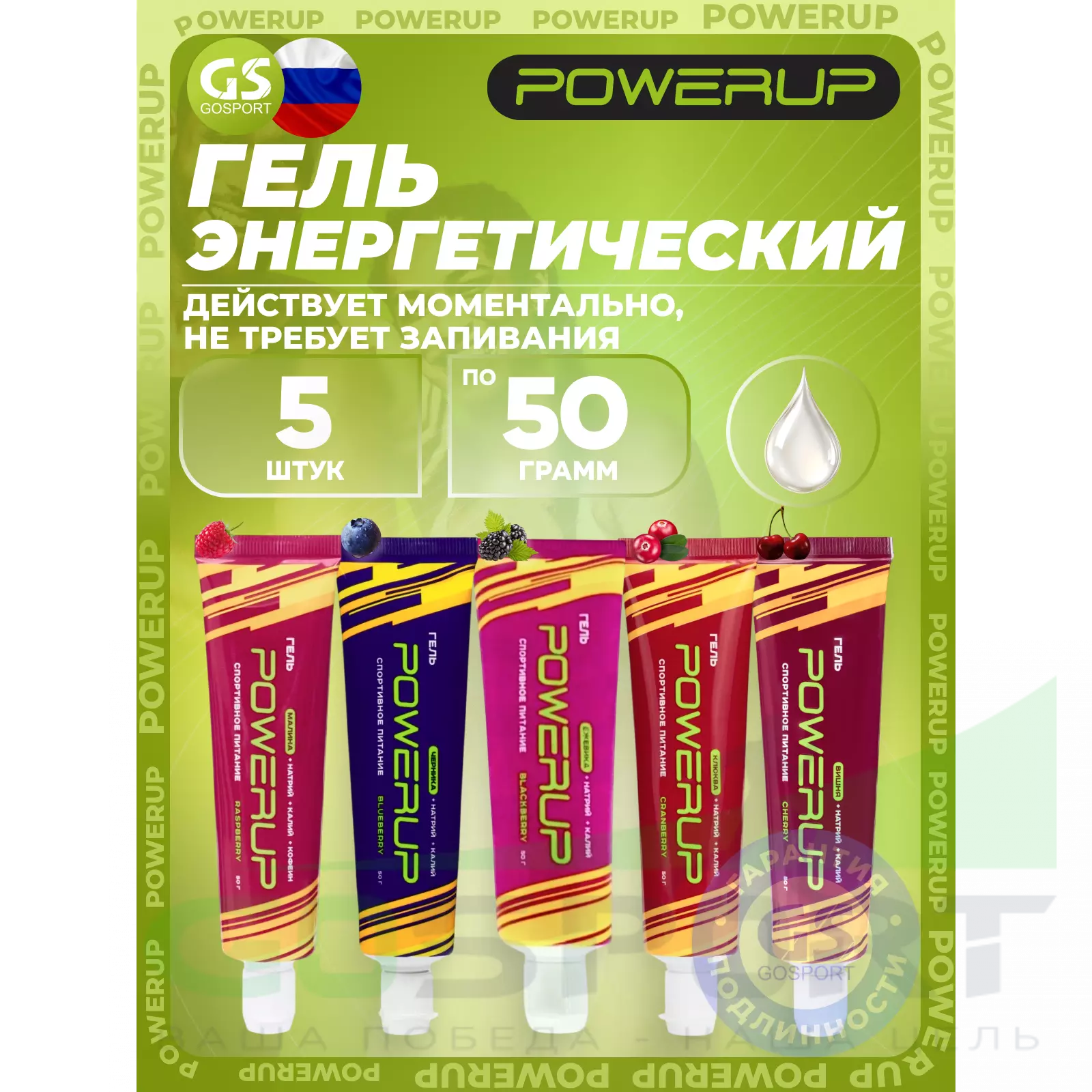Powerup Гель 5 х 50 г, Малина с кофеином, Черника, Клюква, Ежевика, Вишня