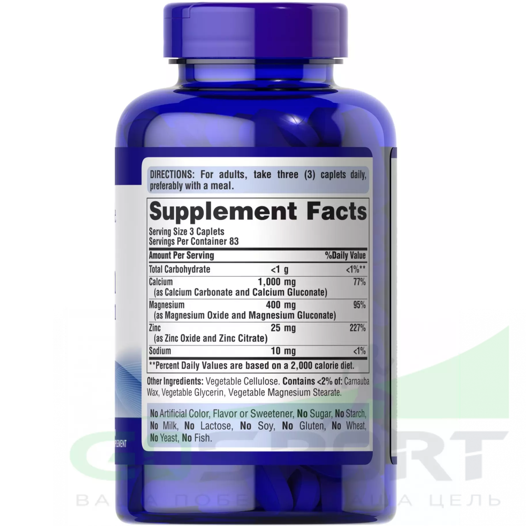 Puritan's Pride Calcium Magnesium Zinc 250 таблеток — Прочность костей и зубов, здоровье нервной системы