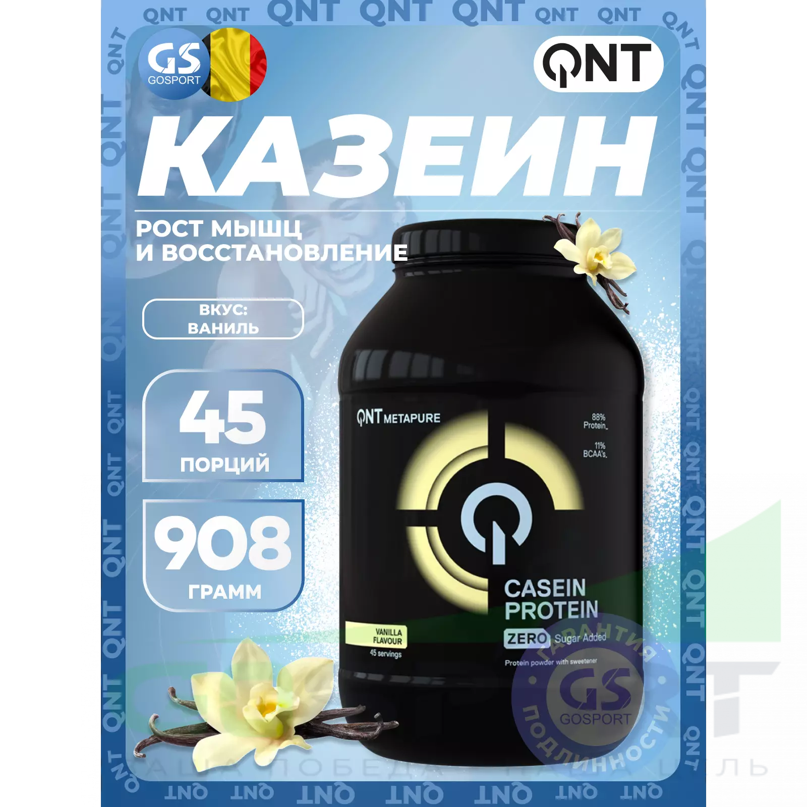 QNT CASEIN представляет собой смесь мицеллярного казеина и казеината кальция. Эта формула обеспечивает белок, который сохраняет все биологические свойства с превосходным аминокислотным профилем, включая высокую концентрацию BCAA.