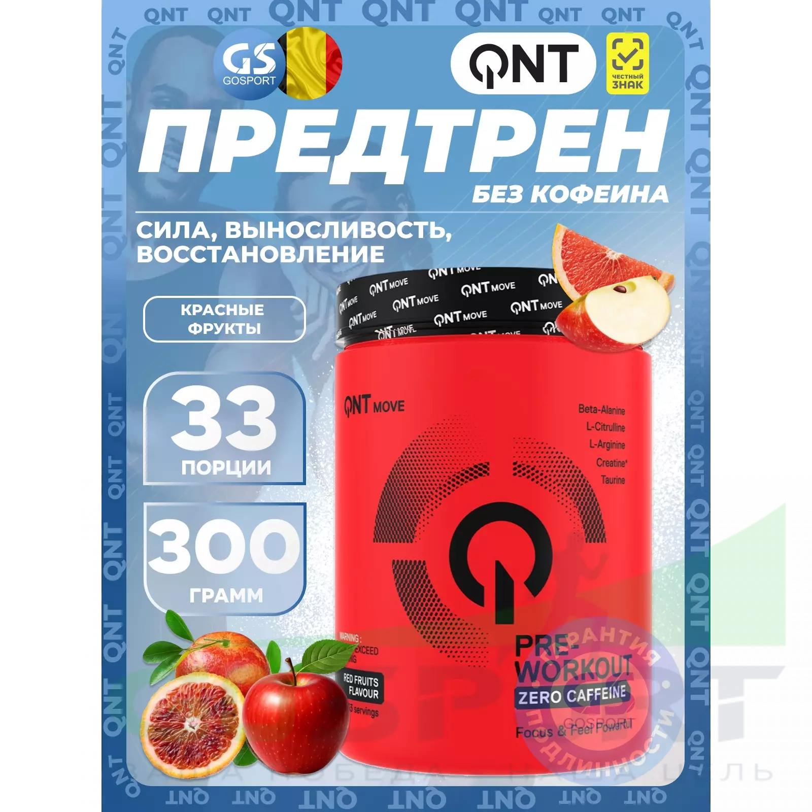 Ингредиенты: бета-аланин, L-аргинин AKG, микронизированный моногидрат креатина, инулин, ароматизатор со вкусом красных фруктов, подкислитель: E330, цитруллиновая основа, подсластитель: E955, краситель: E120, витамин В6, витамин В12.