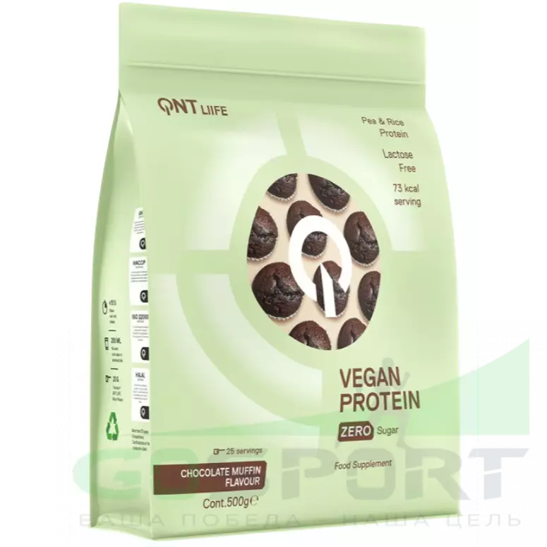 QNT Vegan Protein Zero Sugar 500 г, Шоколад - Маффин — Набор мышечной массы и контроль веса