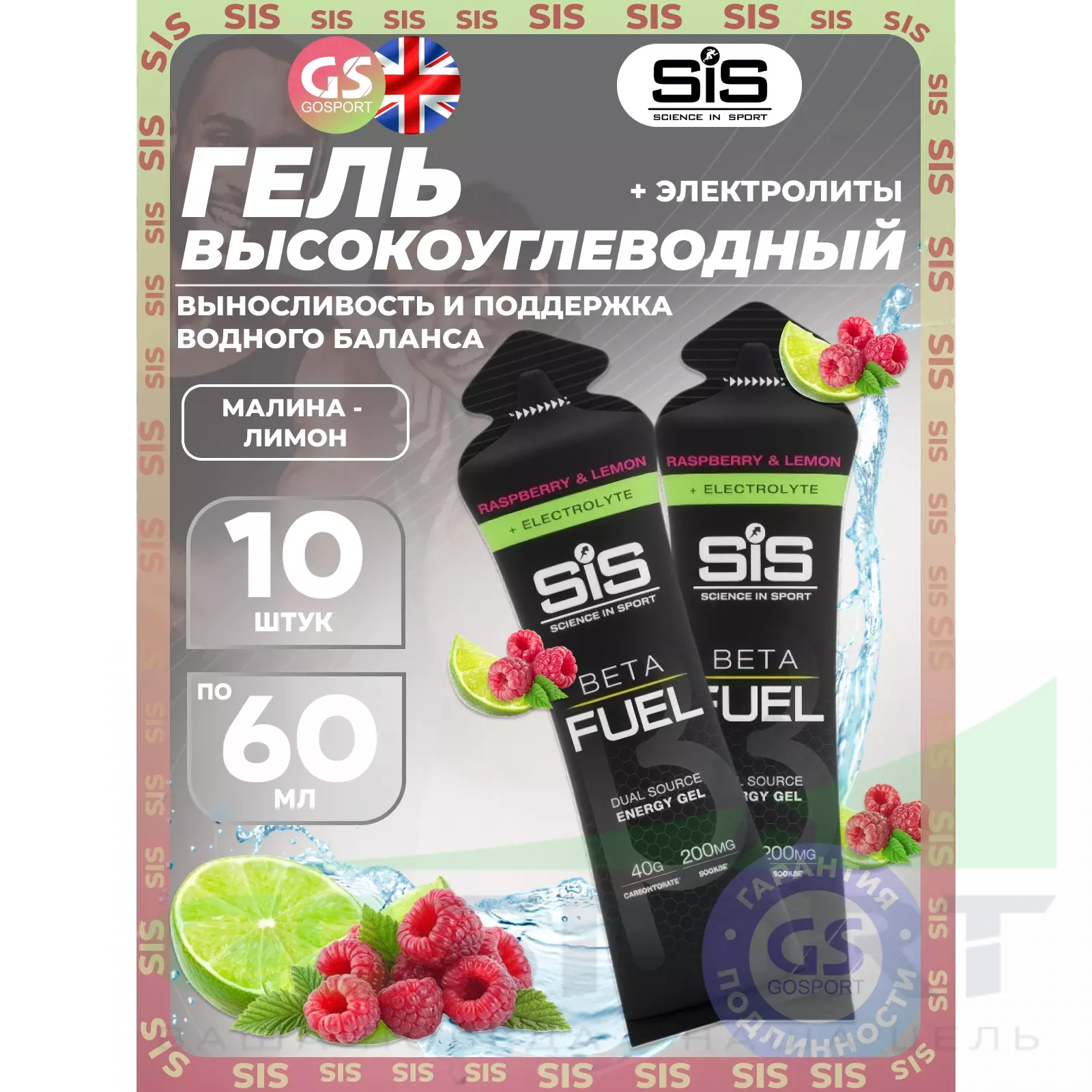 Gel Beta Fuel + electrolyte 10 x 60 мл, Малина - лимон