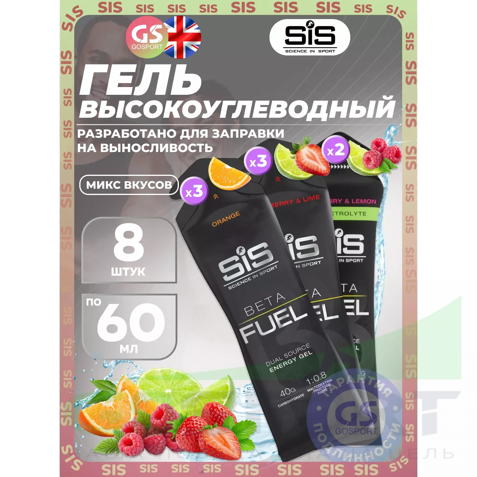 Спортивные диетологи рекомендуют принимать гель с фруктозой и мальтодекстрином, ведь он позволяет использовать организму на 17% углеводов больше чем в формуле 2:1, а следовательно - получать больше энергии. Используйте гели SiS и с другими продуктами линейки Beta Fuel.