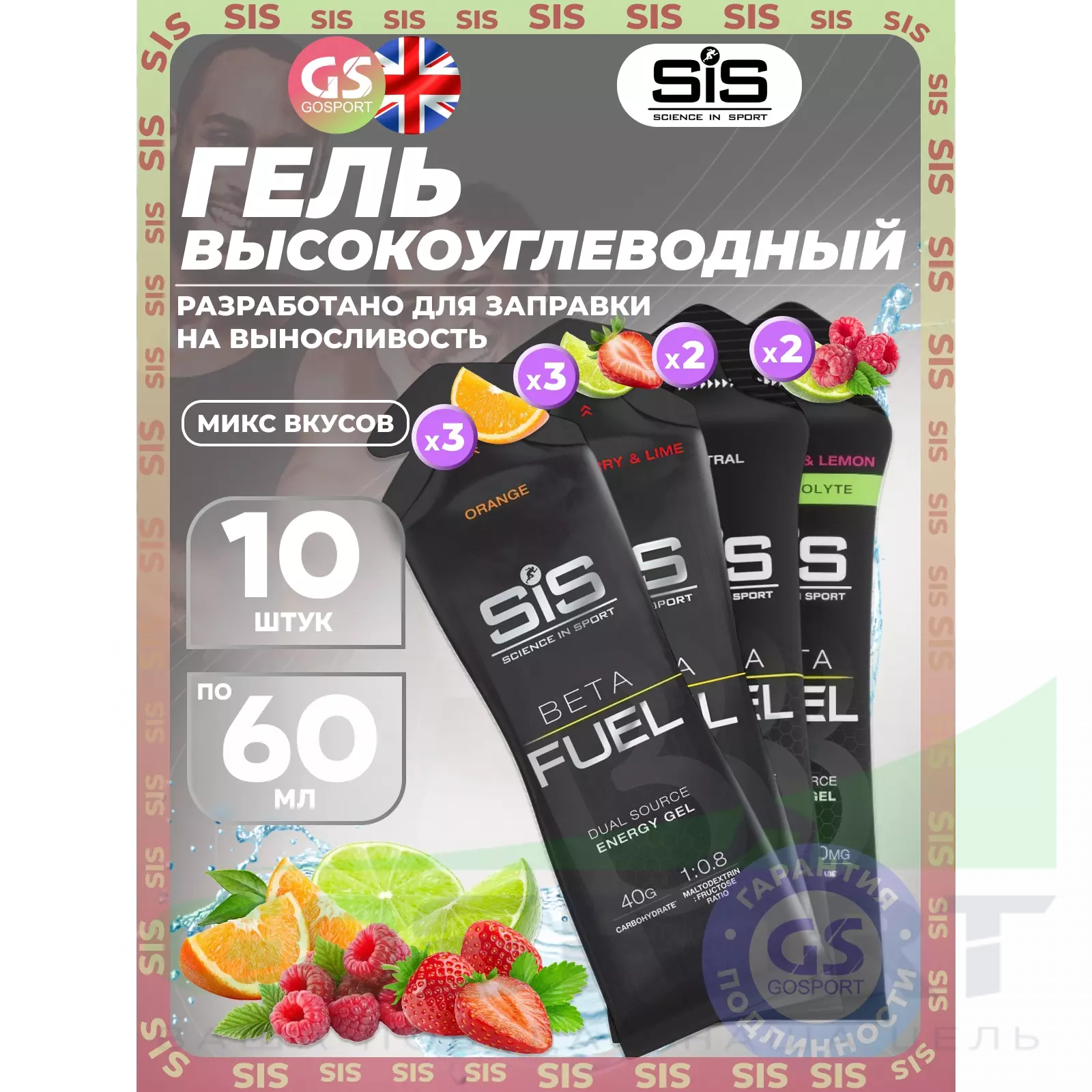Спортивные диетологи рекомендуют принимать гель с фруктозой и мальтодекстрином, ведь он позволяет использовать организму на 17% углеводов больше чем в формуле 2:1, а следовательно - получать больше энергии. Используйте гели SiS и с другими продуктами линейки Beta Fuel.