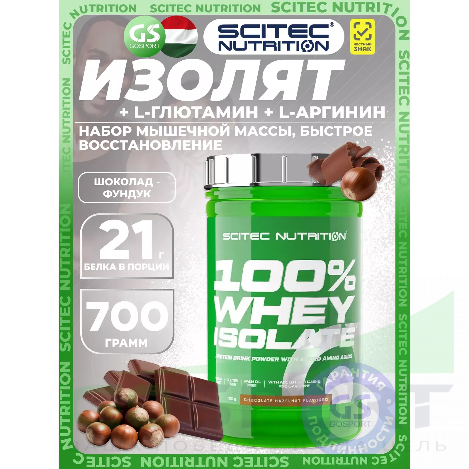 Scitec Nutrition 100% Whey Isolate 700 г, Шоколад-Фундук — Набор мышечной массы, быстрое восстановление