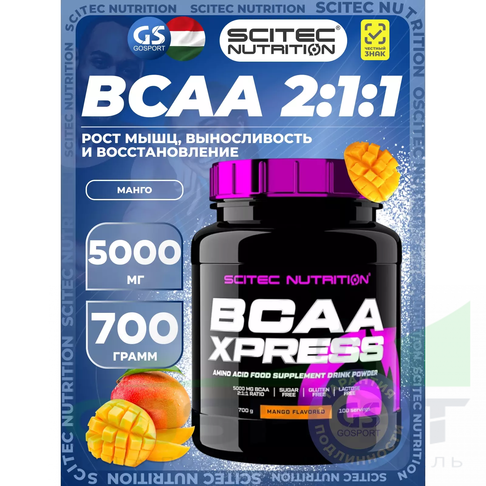 Scitec Nutrition BCAA Xpress 2:1:1 700 г, Манго — Рост мышц, выносливость и восстановление