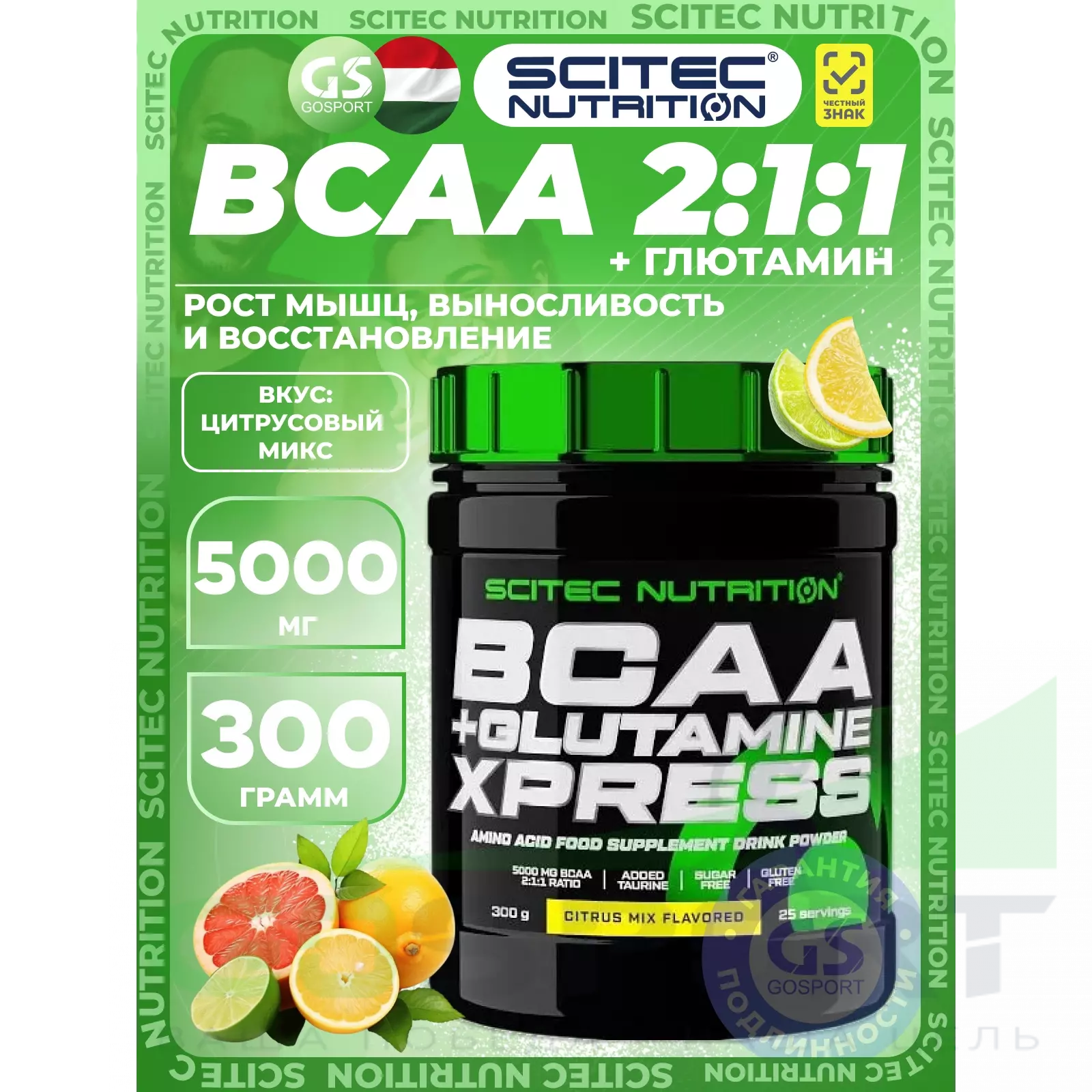 Scitec Nutrition BCAA + Glutamine Xpress 300 г, Цитрусовый микс — Рост мышц, выносливость и восстановление