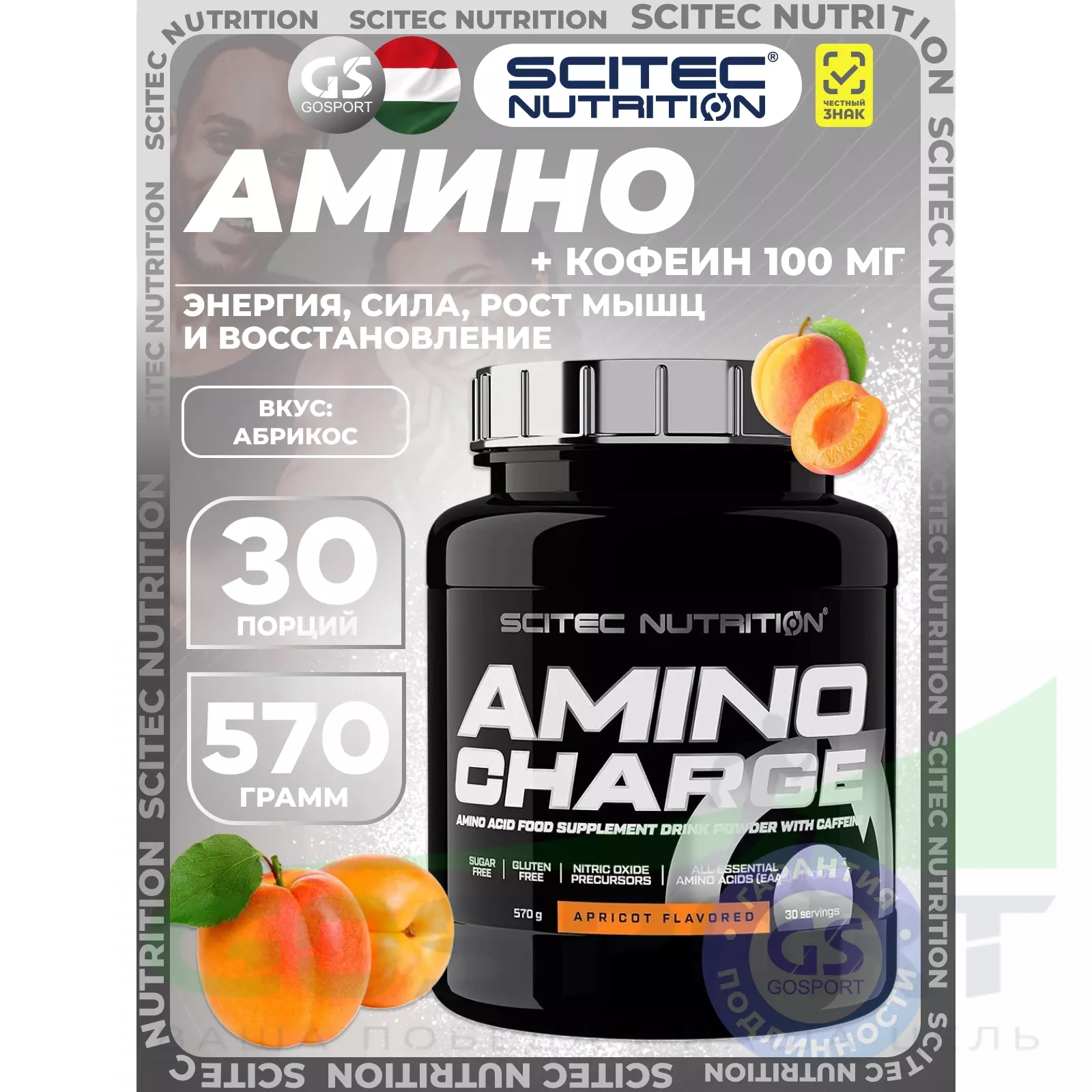Scitec Nutrition Amino Charge 570 г, Абрикос — Энергия, сила, рост мышц и восстановление