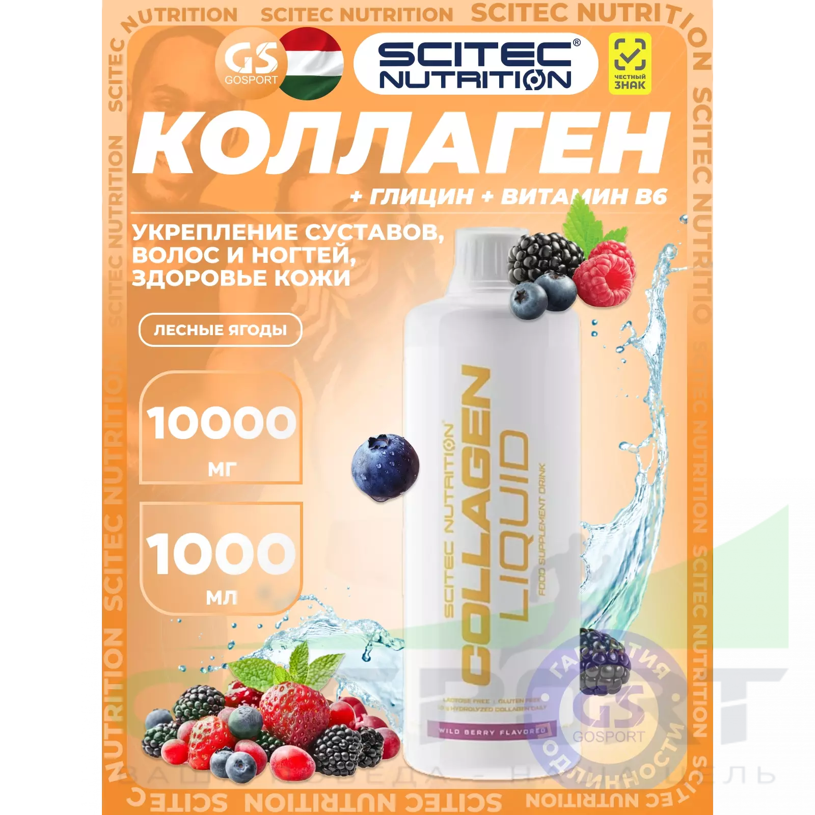Scitec Nutrition Collagen Liquid 10000 mg 1000 мл, Лесные ягоды — Укрепление суставов, волос и ногтей, здоровье кожи