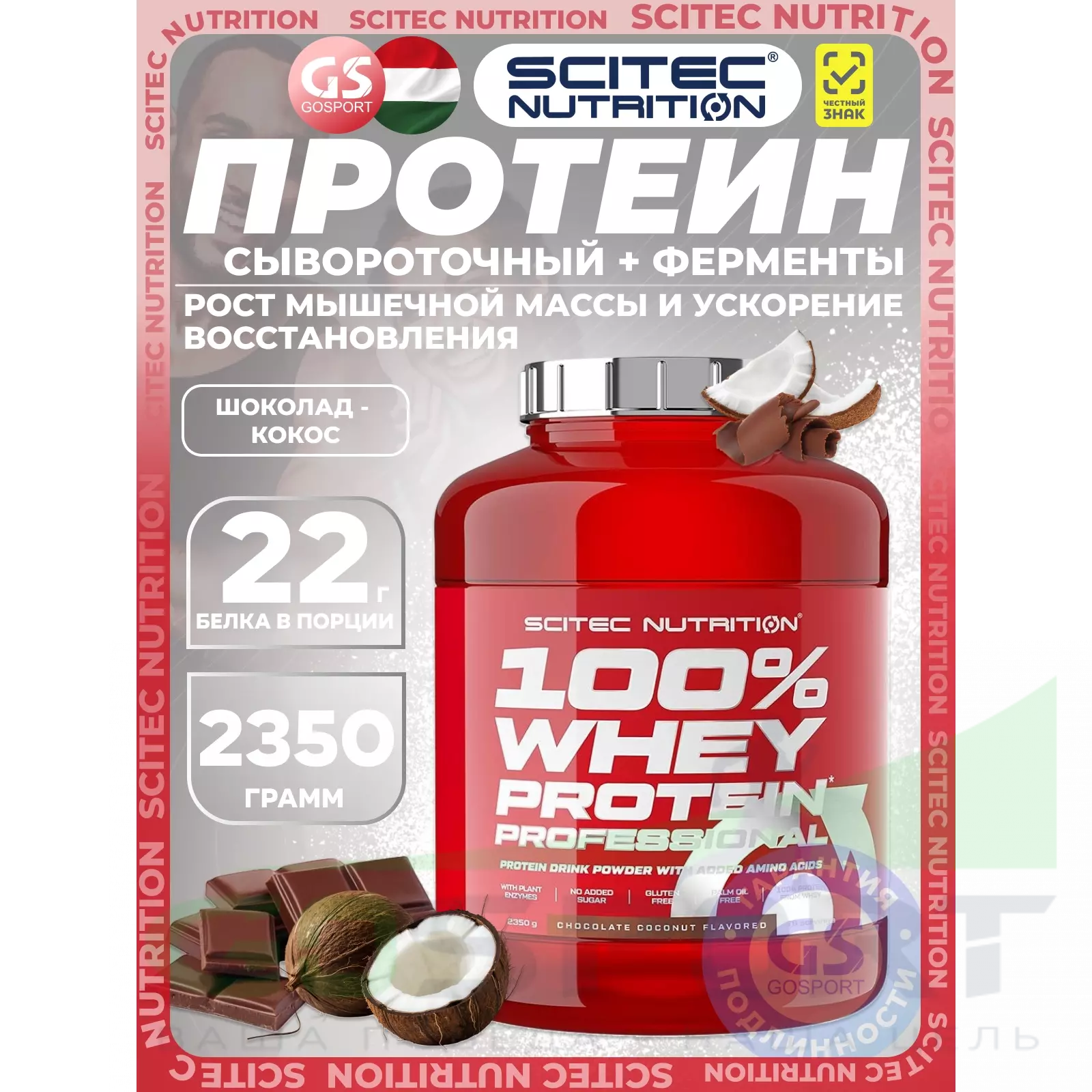 Scitec Nutrition 100% Whey Protein Professional 2350 г, Шоколад - Кокос — Рост мышечной массы и ускорение восстановления