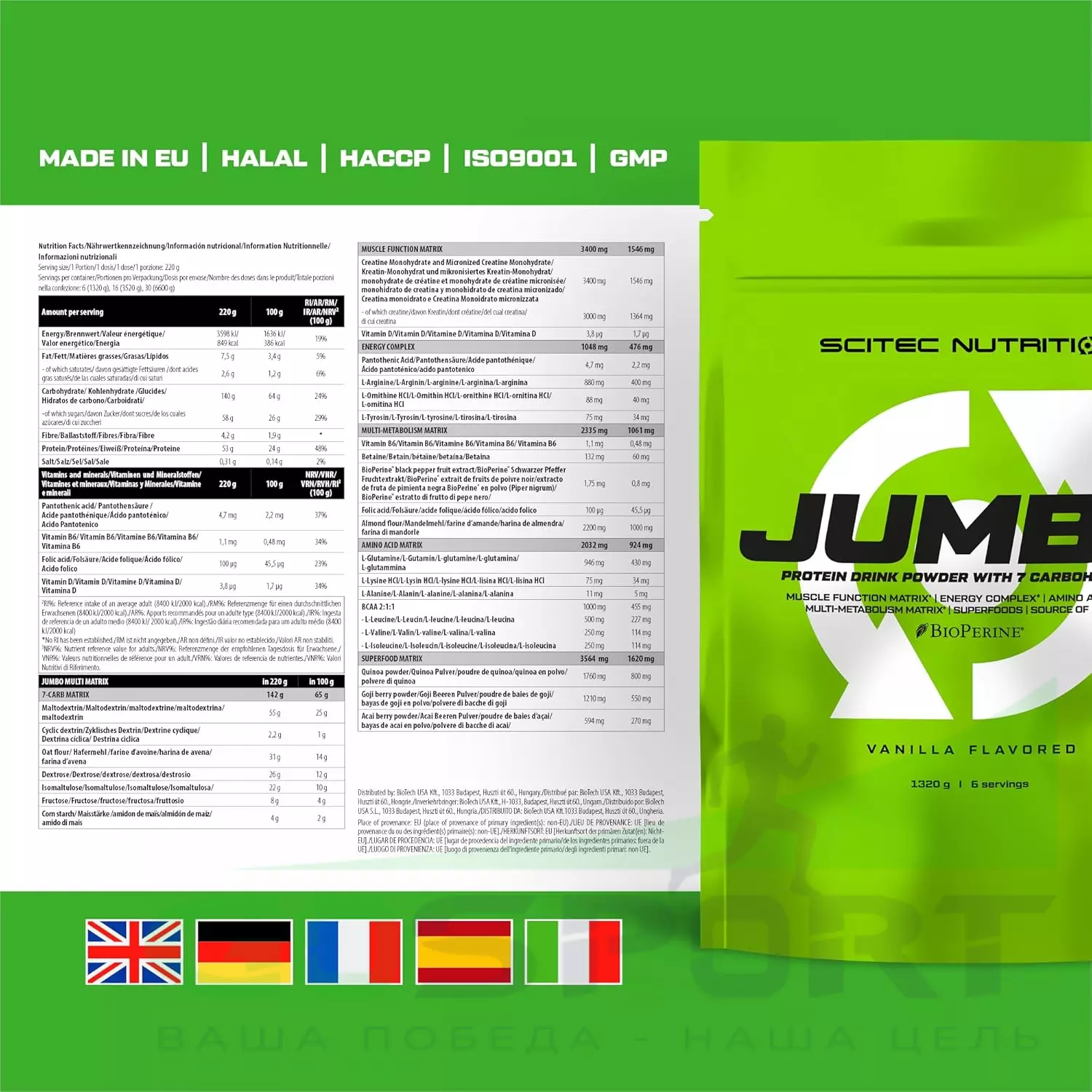 JUMBO - новый продукт от SCI TEC, разработанный специально для «экстренных случаев» как с точки зрения набора массы, так и с точки зрения усиления энергетики. В состав JUMBO входят наиболее современные формы углеводов, включая Vitargo, самые легкоусваиваемые формы глютамина - N-ацетил –L-глютамин, глютамин этил эстер, L-глютамин, L-ацетил-L-глютамин , пять наиболее активных донаторов азота и система ферментов для наиболее полного усвоения всех питательных веществ, входящих в состав JUMBO.