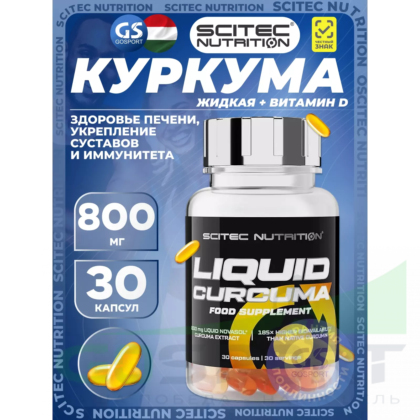 Scitec Nutrition Liquid Curcuma 800 mg 30 капсул — Здоровье печени, укрепление суставов и иммунитета