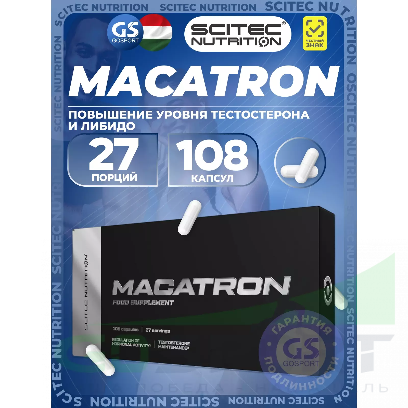 MACATRON — это ультрасовременная, комплексная матрица для оптимизации уровня тестостерона, эстрогена и либидо, содержащая 13 тщательно отобранных эффективных ингредиентов!
