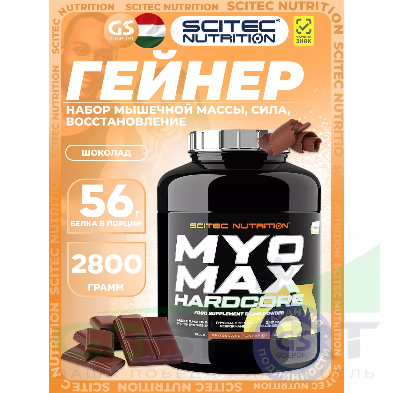 Scitec Nutrition Myomax Hardcore 2800 г, Шоколад — Набор мышечной массы, сила, восстановление