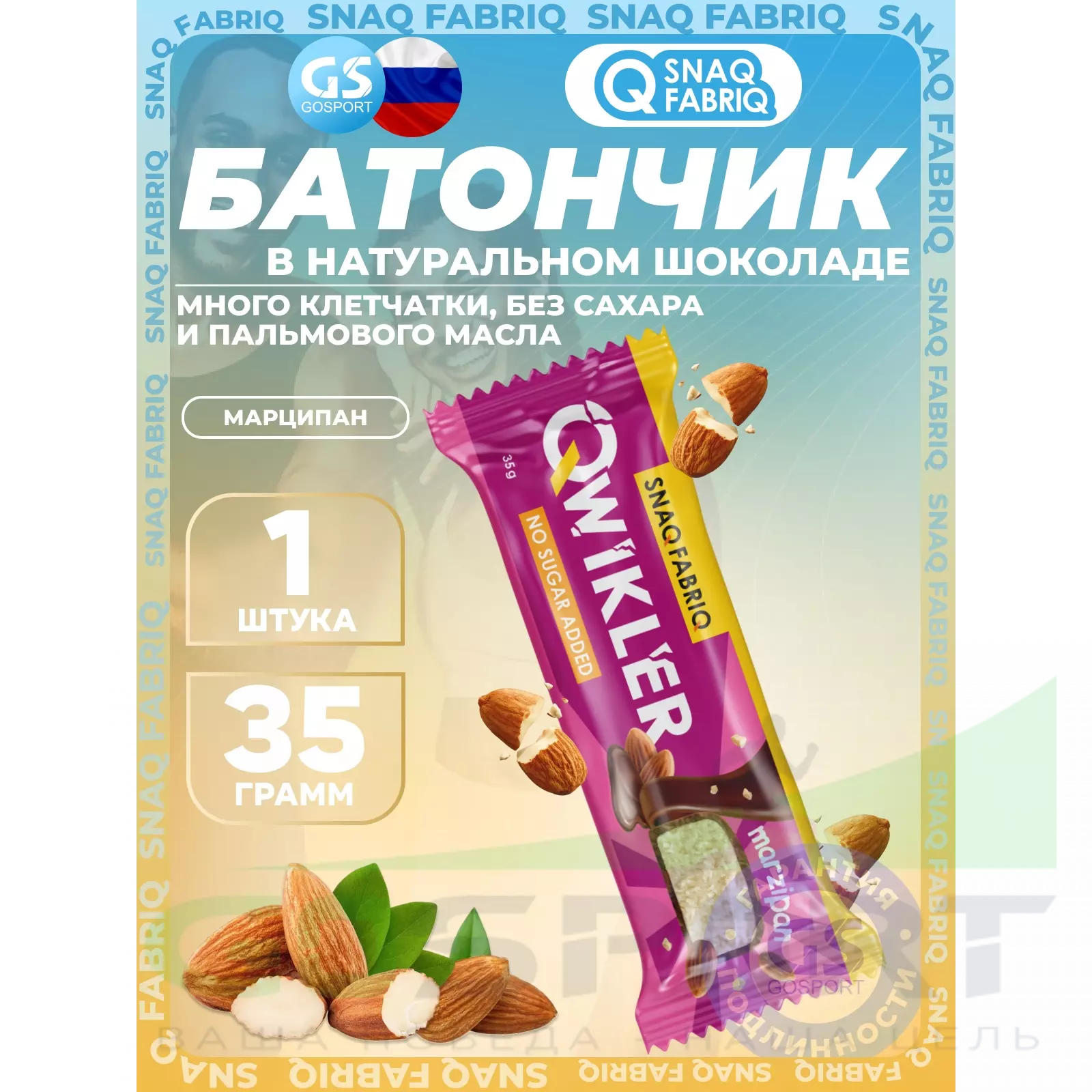 SNAQ FABRIQ QWIKLER (Квиклер) без сахара 35 г, Марципан — Полезный перекус и поддержка диеты