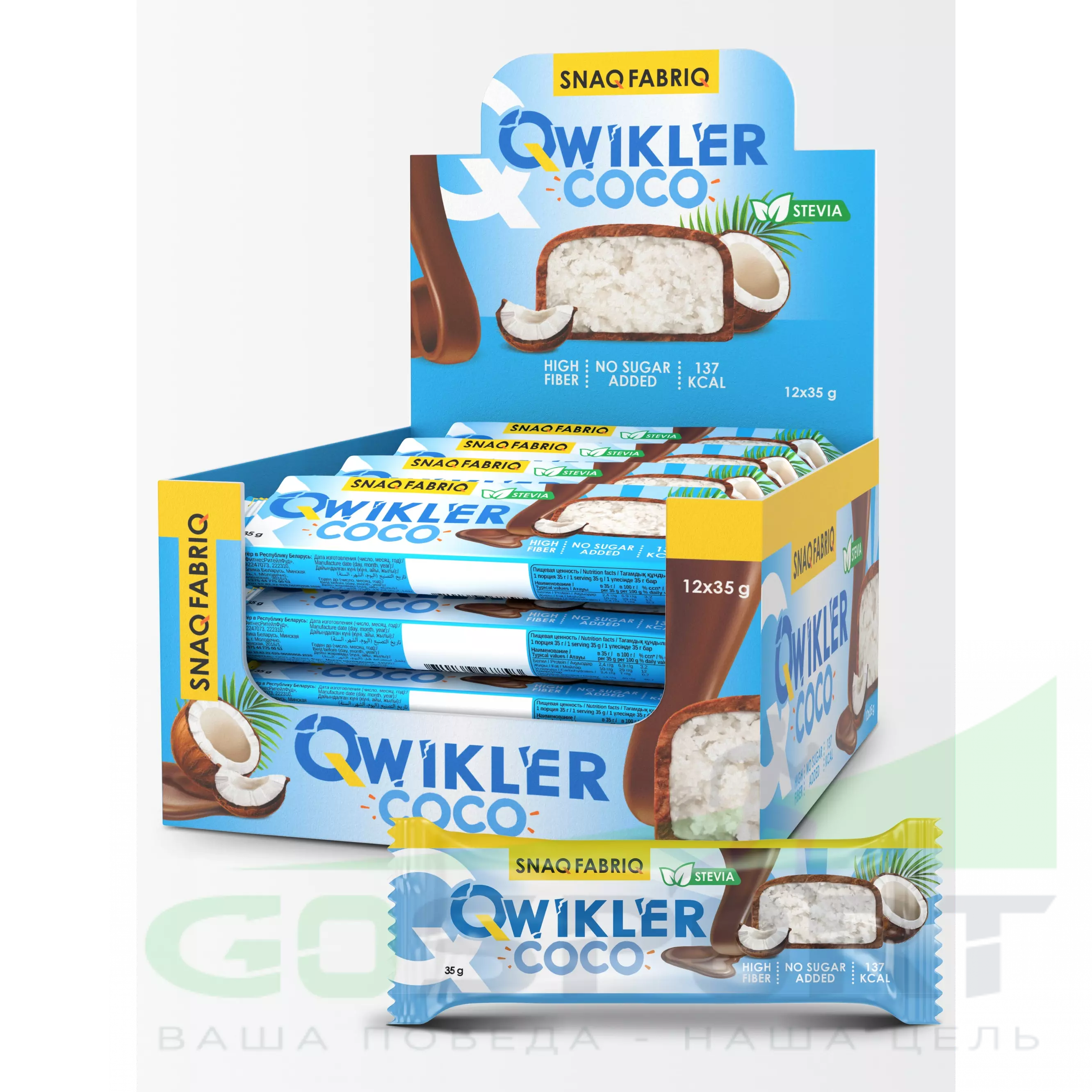 SNAQ FABRIQ Шоколадный батончик без сахара "QWIKLER" (Квиклер) 30 x 35 г, Кокос — Полезный перекус и поддержка диеты