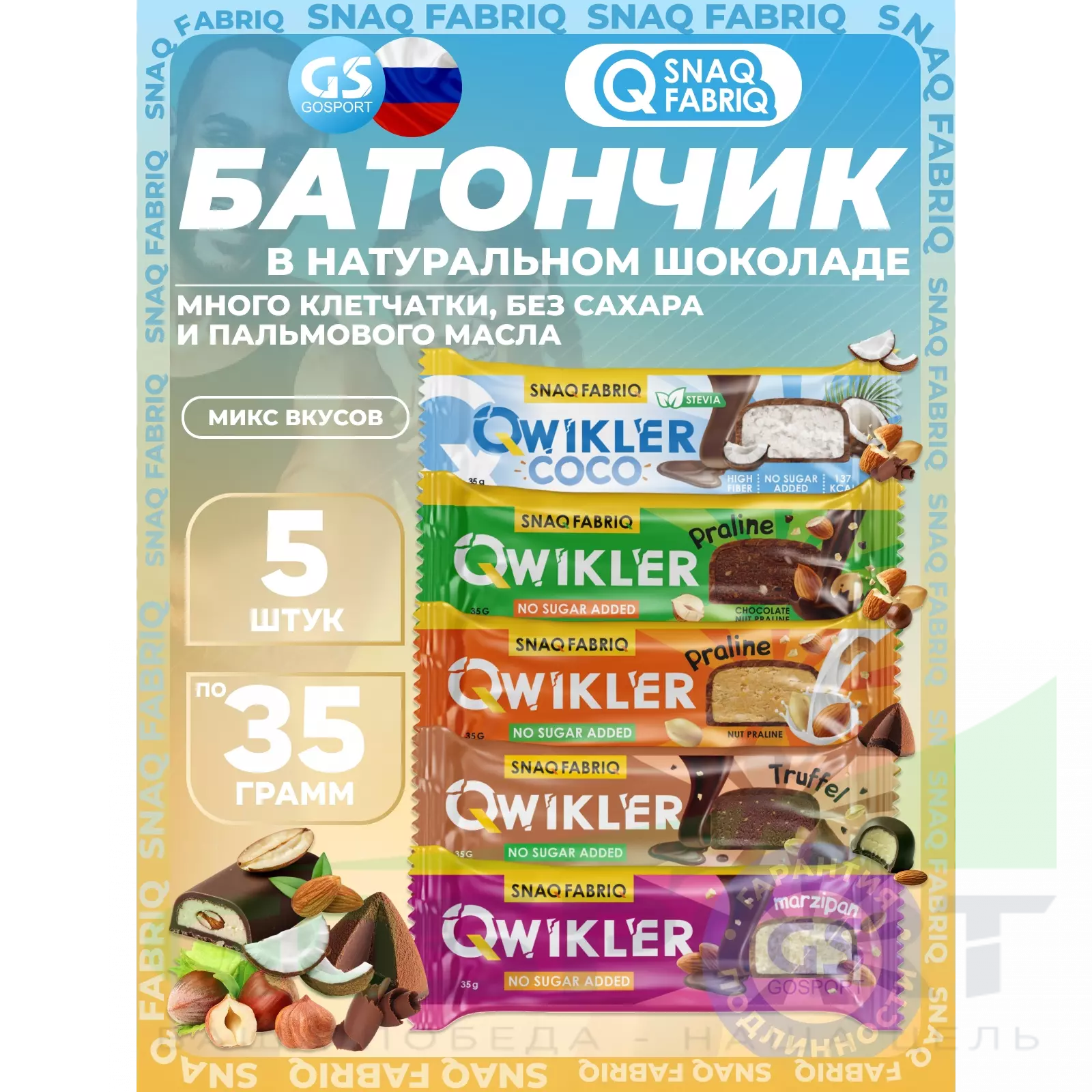 SNAQ FABRIQ QWIKLER (Квиклер) без сахара 5 x 35 г, Микс 1 — Полезный перекус и поддержка диеты