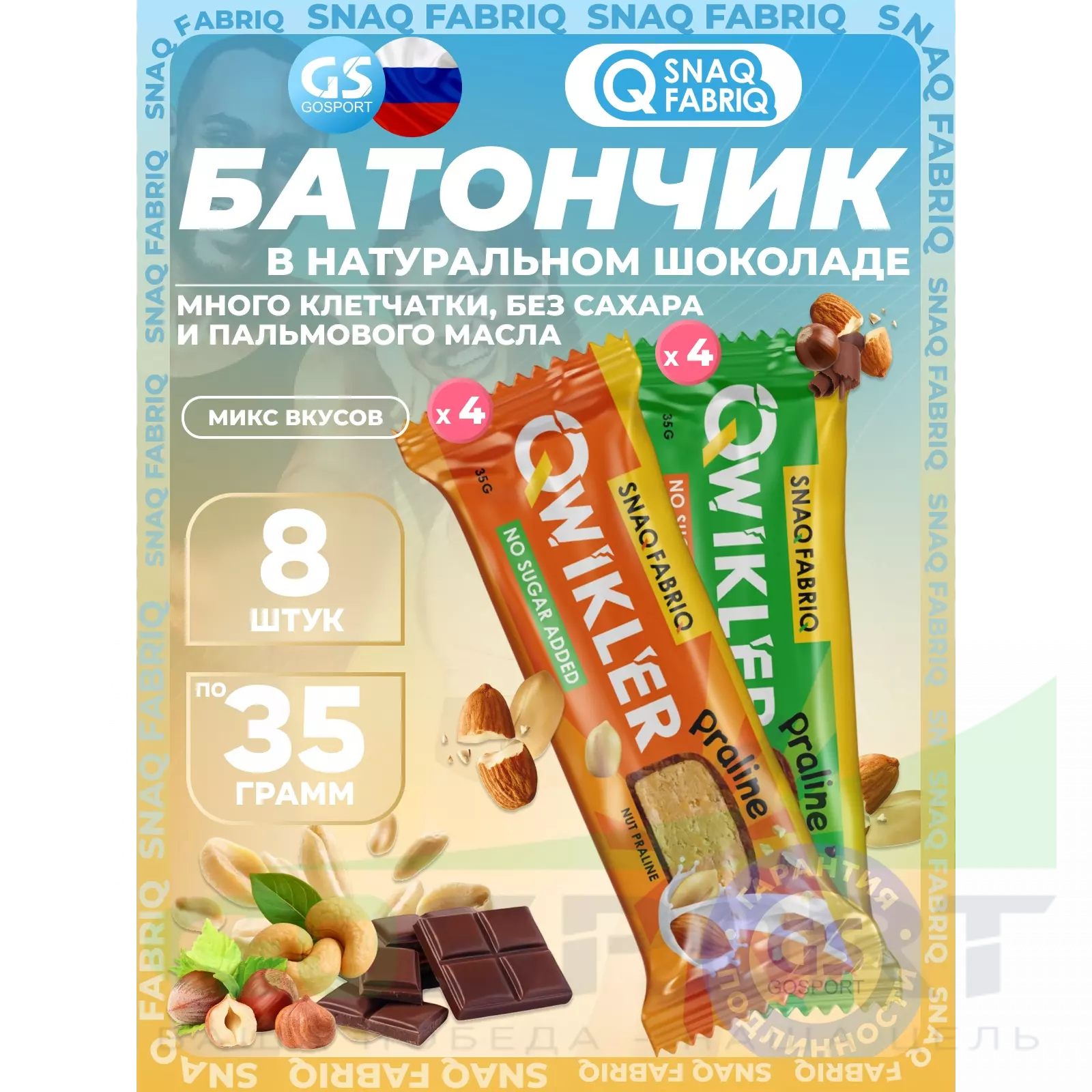SNAQ FABRIQ Шоколадный батончик QWIKLER 8 x 35 г, Микс 10 — Полезный перекус и поддержка диеты