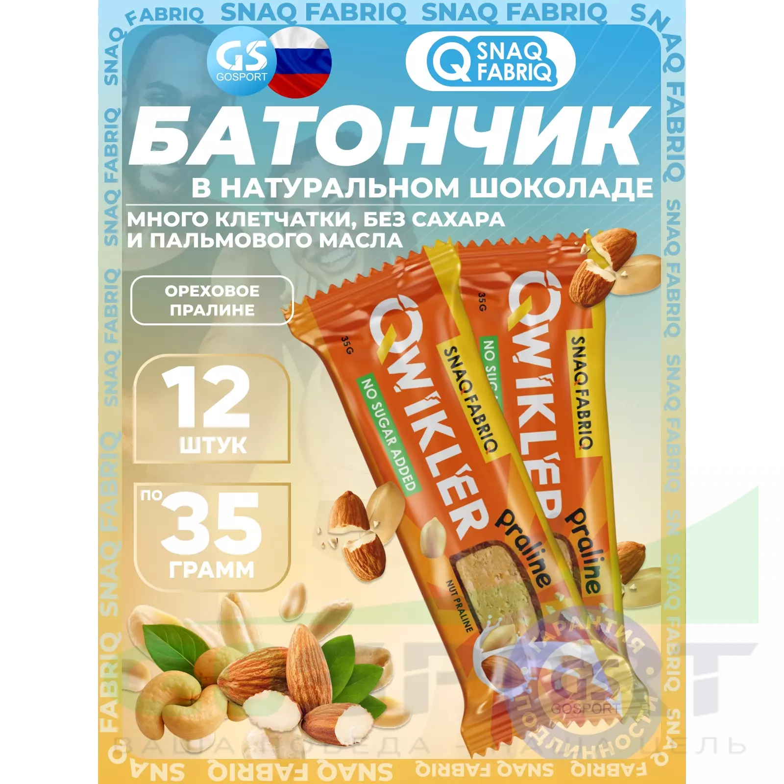 SNAQ FABRIQ QWIKLER (Квиклер) без сахара 12 x 35 г, Ореховое пралине — Полезный перекус и поддержка диеты