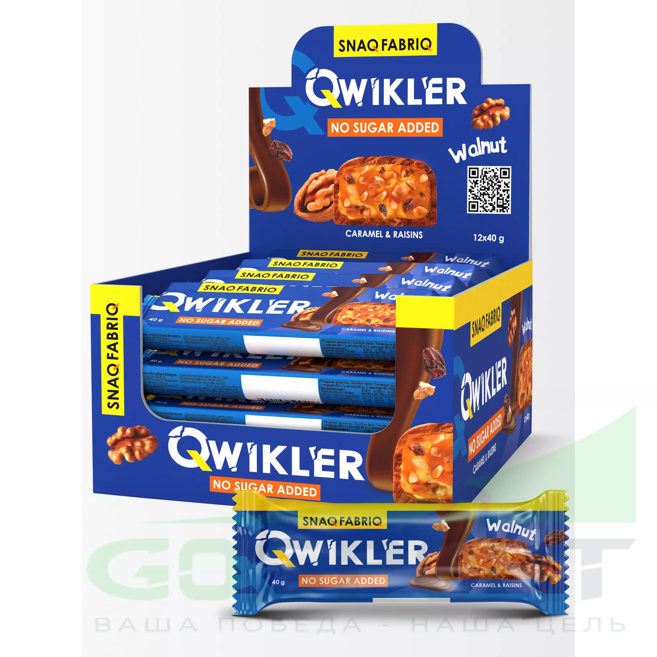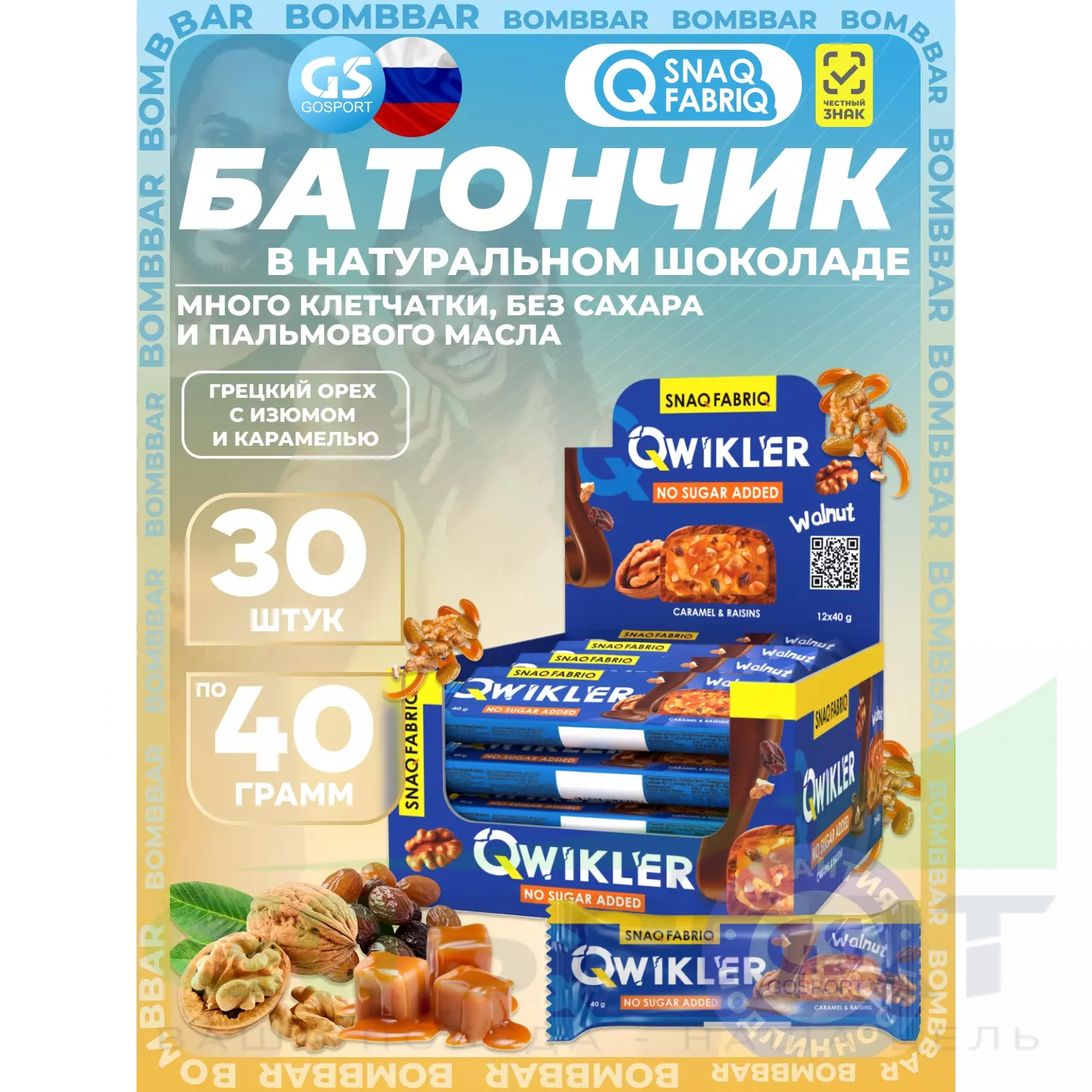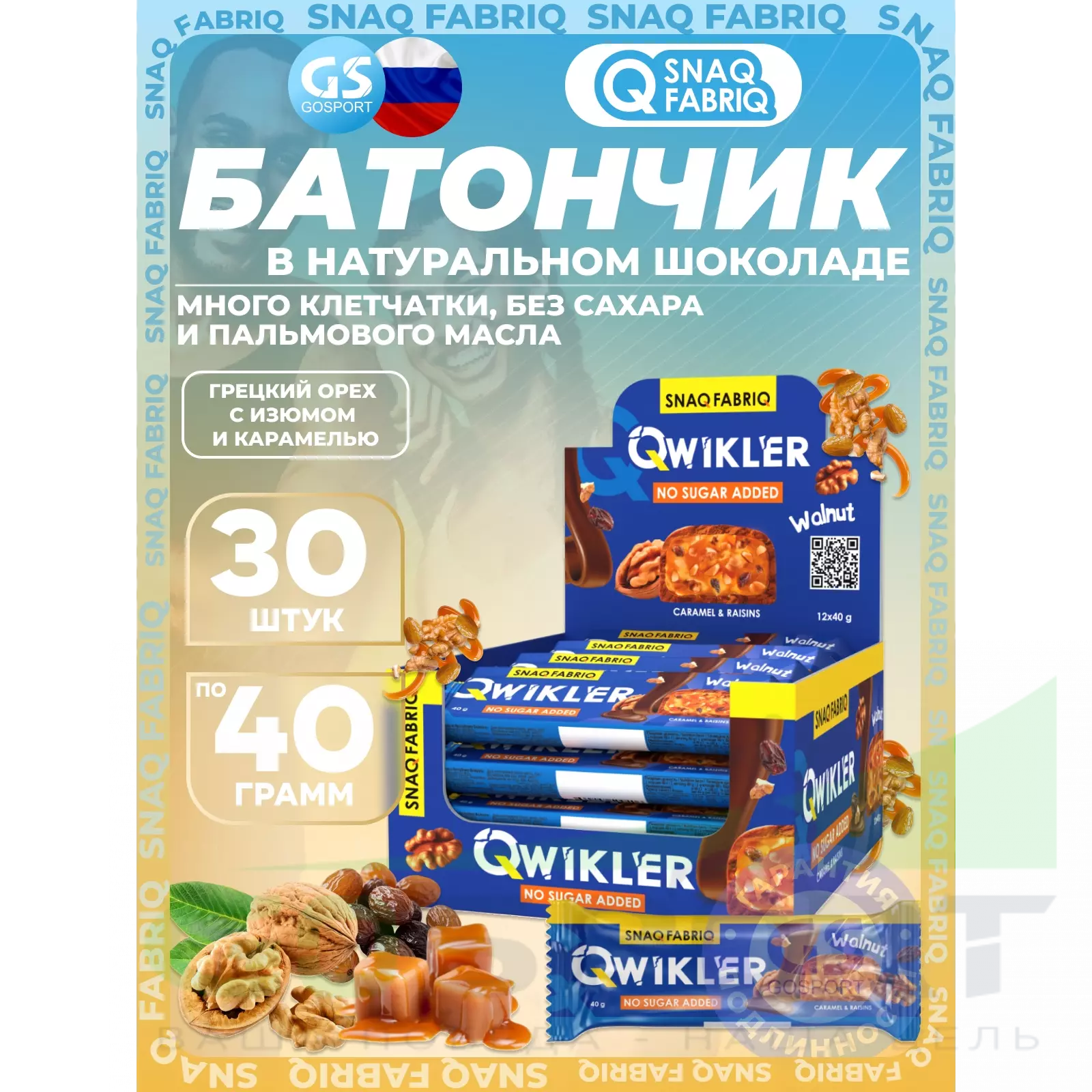 SNAQ FABRIQ QWIKLER (Квиклер) без сахара 30 x 40 г, Грецкий орех с изюмом и карамелью