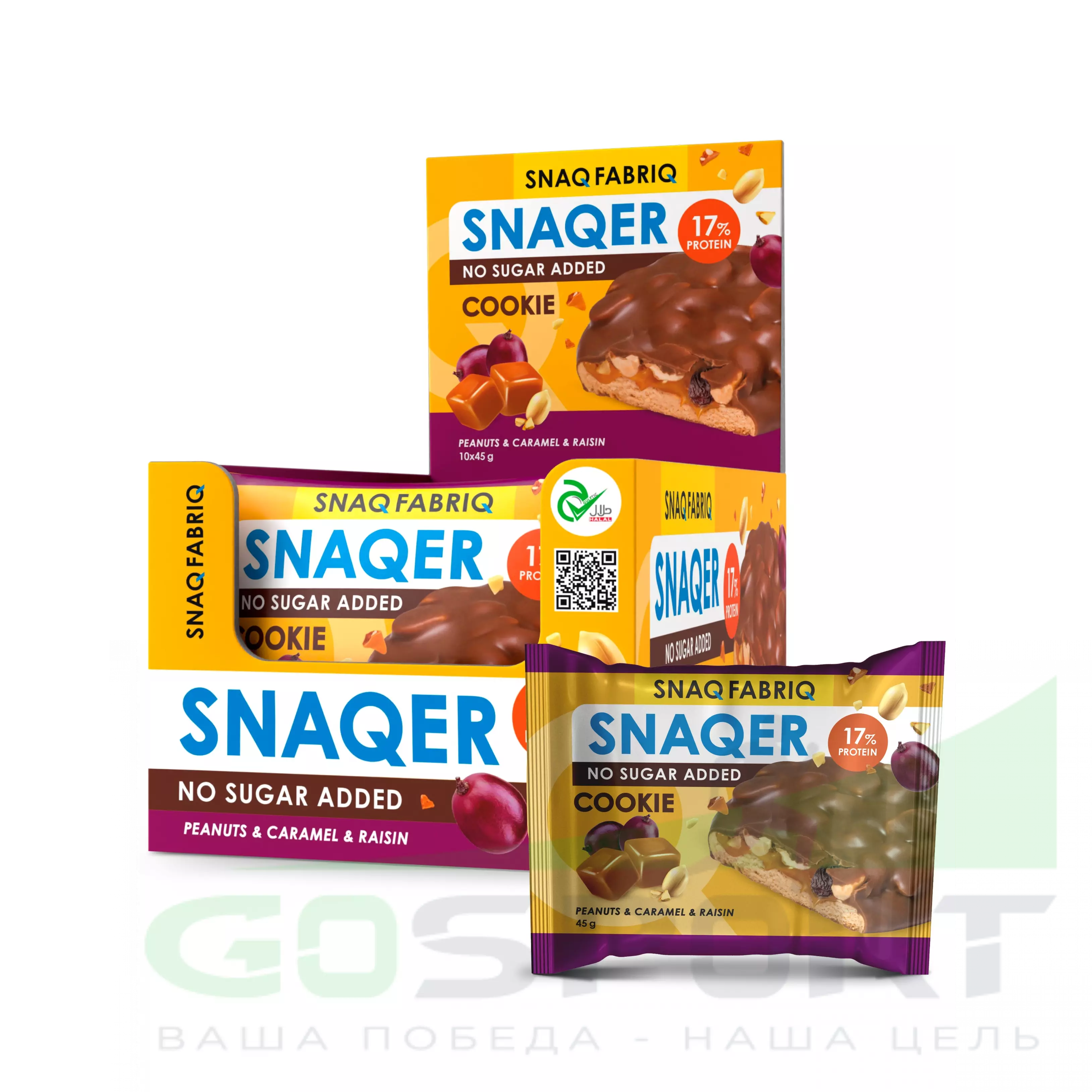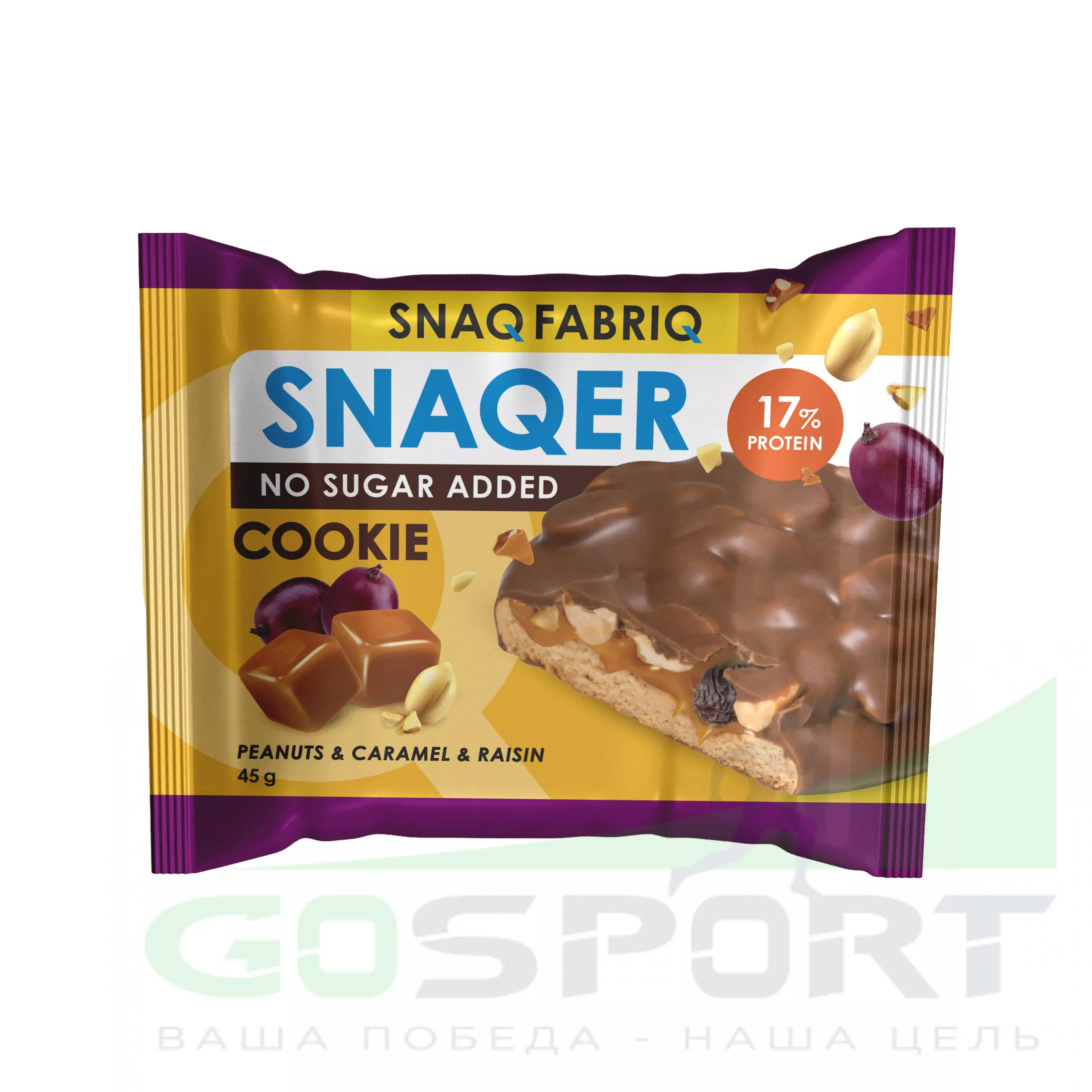 SNAQ FABRIQ Печенье SNAQER 10 x 45 г, Арахис - изюм - карамель — Полезный и питательный перекус
