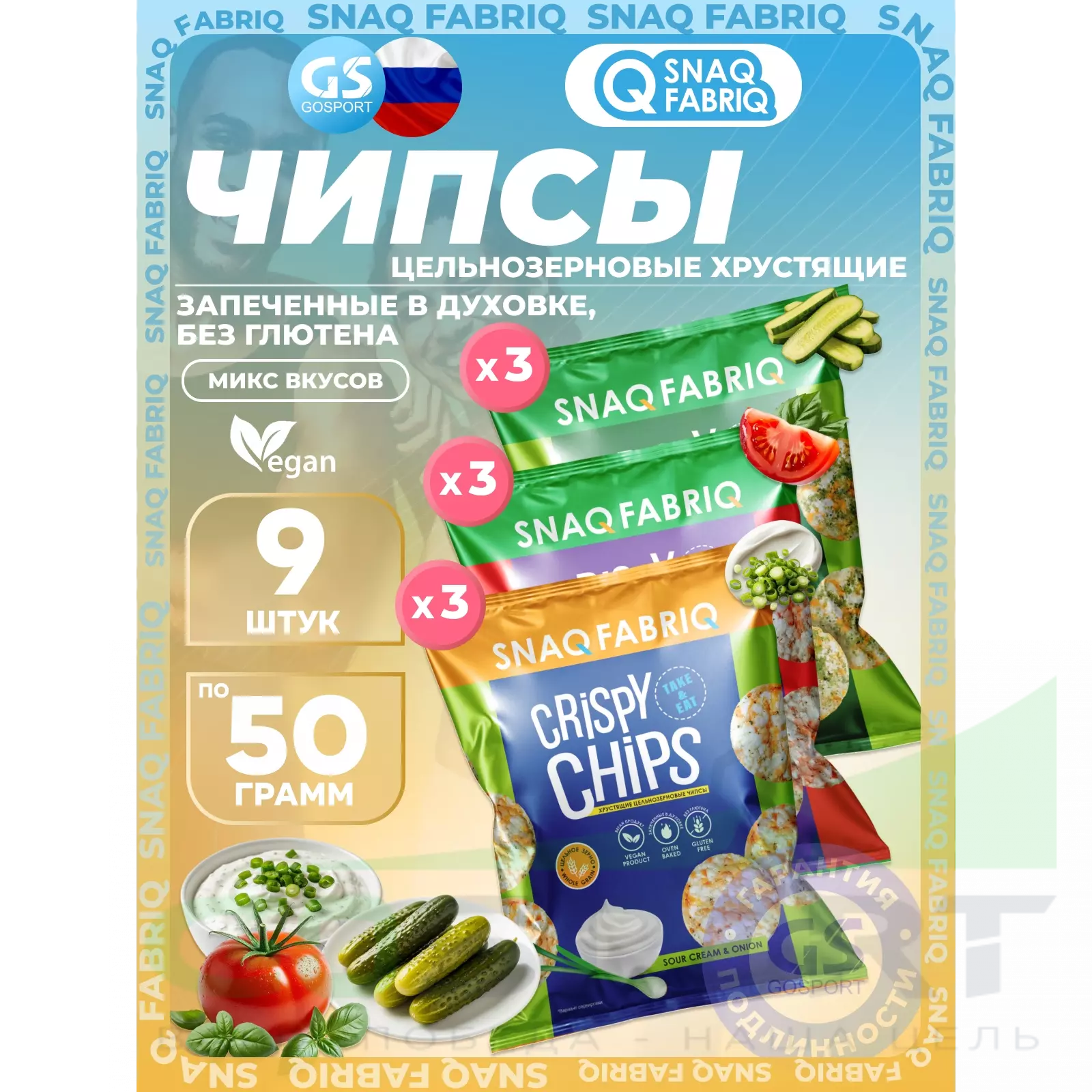 SNAQ FABRIQ Crispy Chips хрустящие цельнозерновые чипсы 9 x 50 г, Микс 8 — Запеченные в духовке, без глютена
