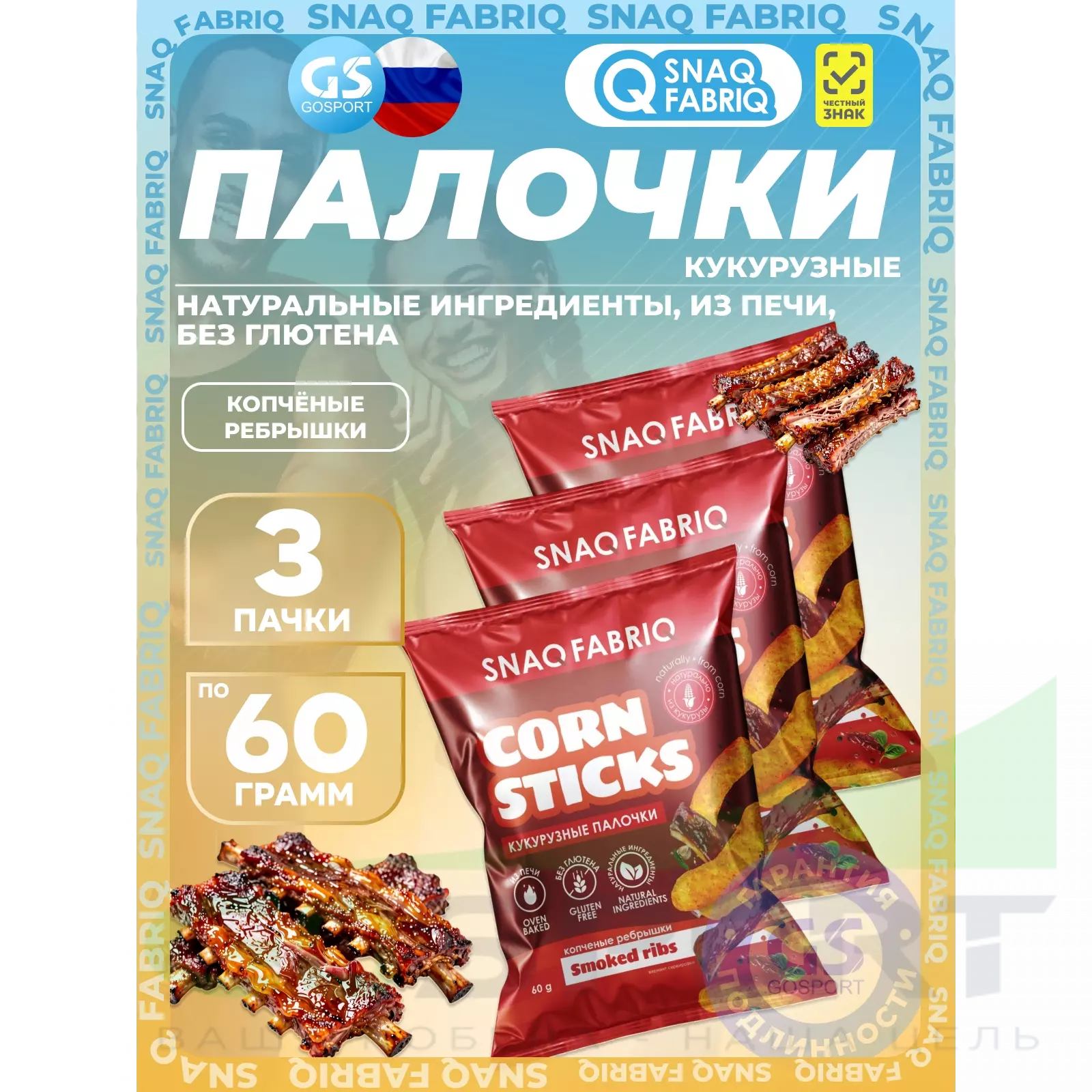 SNAQ FABRIQ Кукурузные палочки Corn Sticks 3 x 60 г, Копченые ребрышки — Полезный и легкий перекус