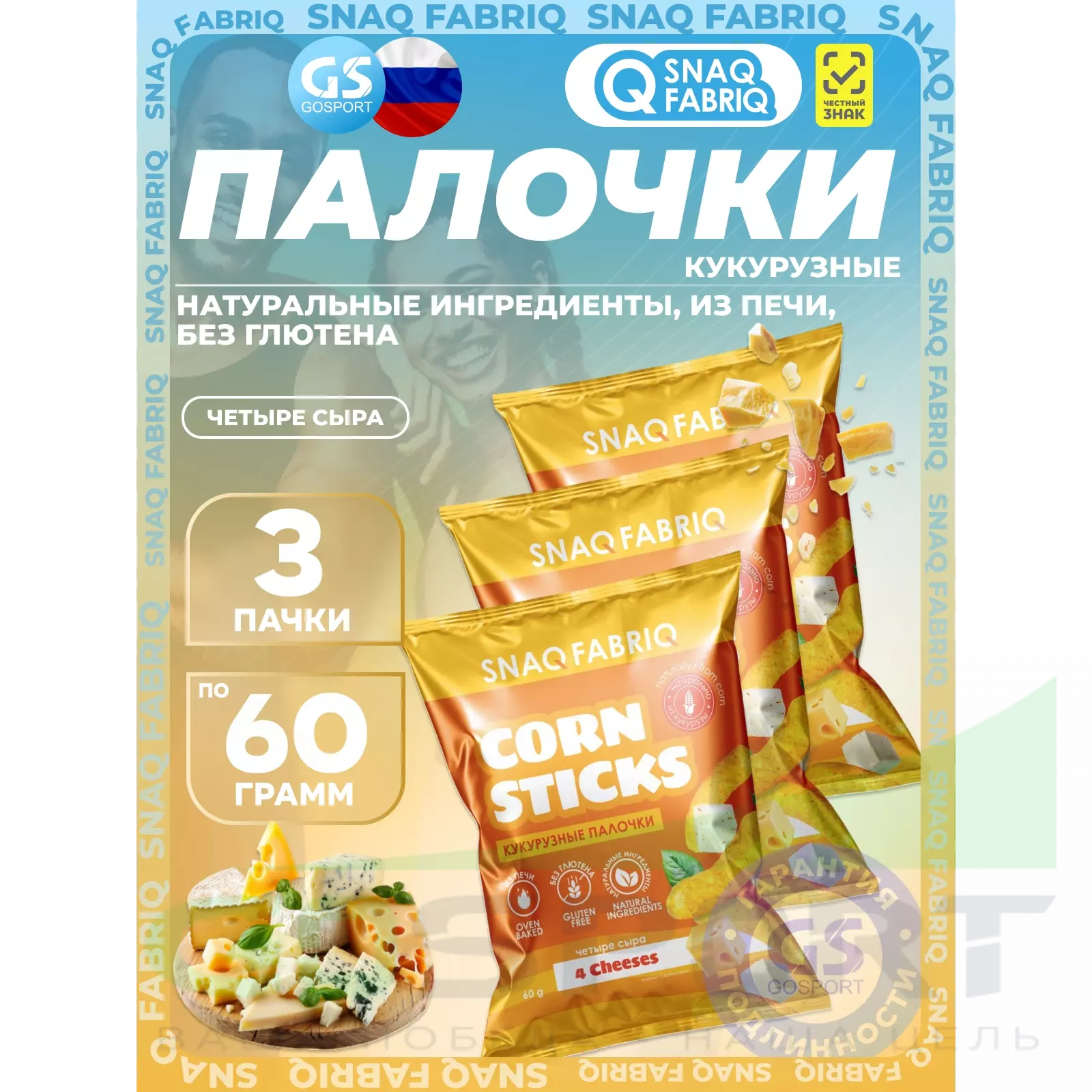 Кукурузные палочки Corn Sticks 3 x 60 г, Четыре сыра