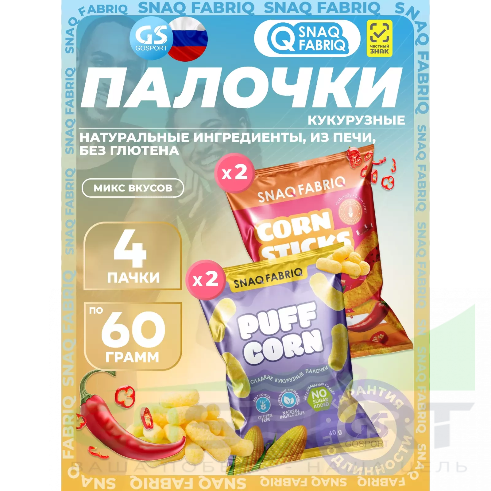 SNAQ FABRIQ Кукурузные палочки Puff Corn 4 x 60 г, Микс 2 — Полезный и легкий перекус