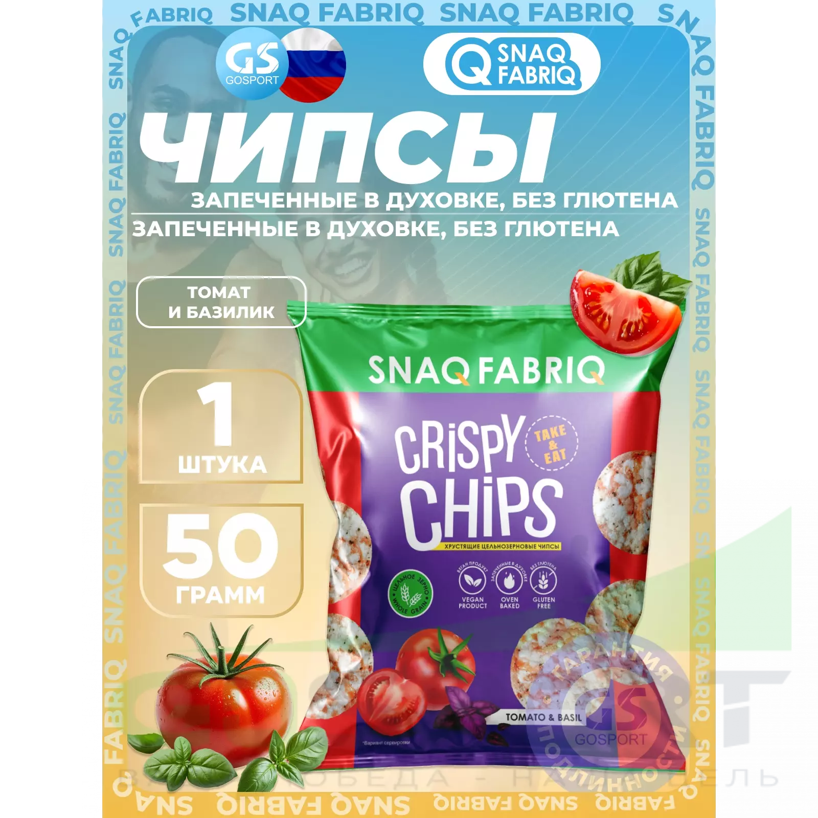 Crispy Chips цельнозерновые 50 г, Томат и базилик