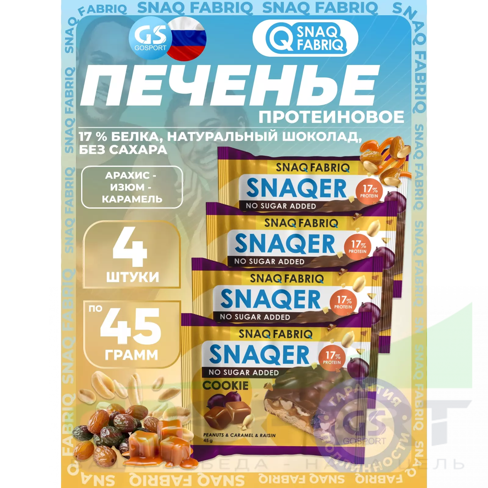 SNAQ FABRIQ Печенье SNAQER 4 x 45 г, Арахис - изюм - карамель — Полезный и питательный перекус