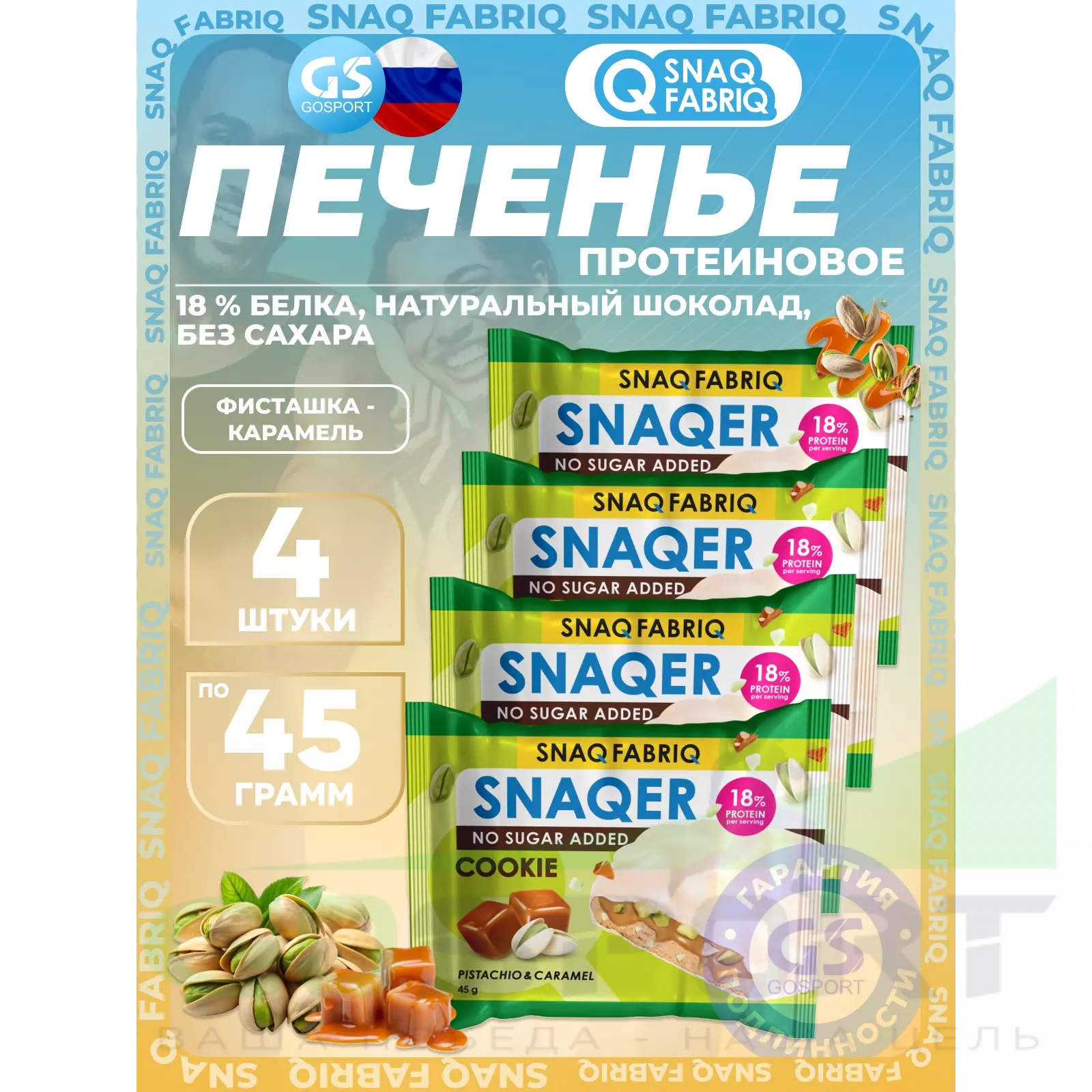 SNAQ FABRIQ Печенье SNAQER 4 x 45 г, Фисташка-карамель — Полезный и питательный перекус