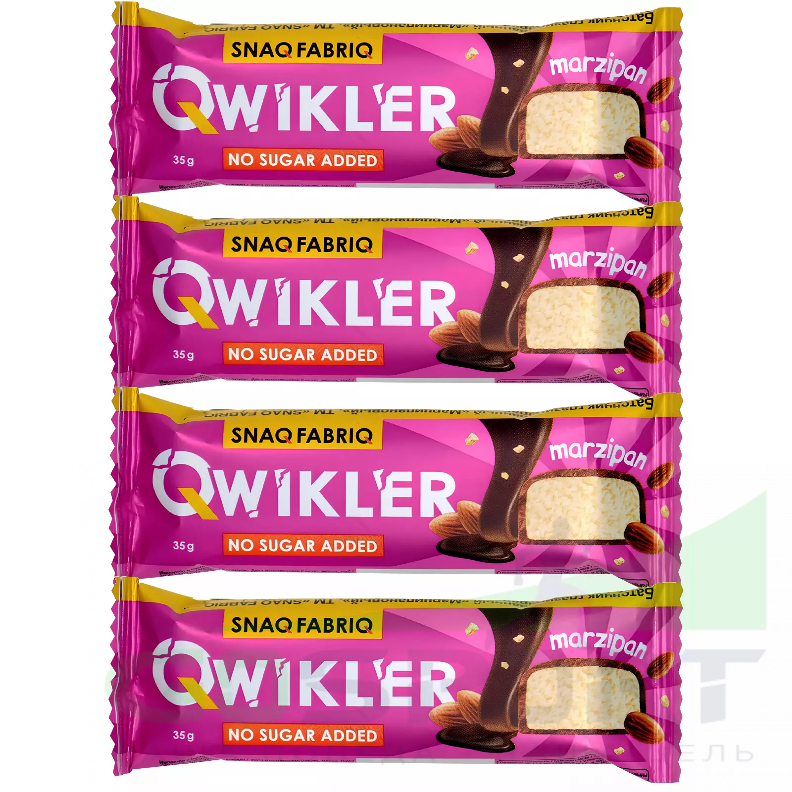 SNAQ FABRIQ Шоколадный батончик без сахара "QWIKLER" (Квиклер) 4 x 35 г, Марцепана