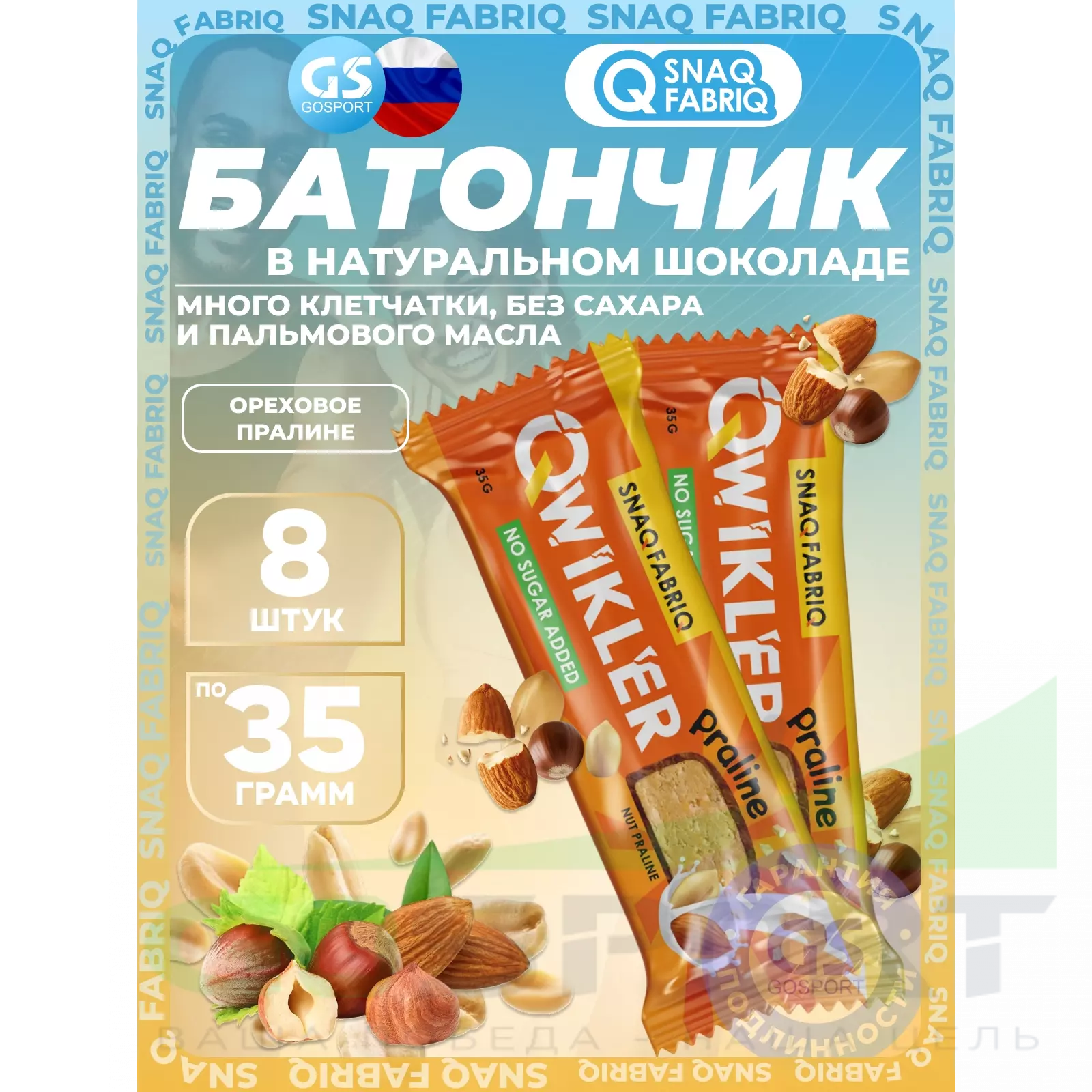 SNAQ FABRIQ QWIKLER (Квиклер) без сахара 8 x 35 г, Ореховое пралине — Полезный перекус и поддержка диеты