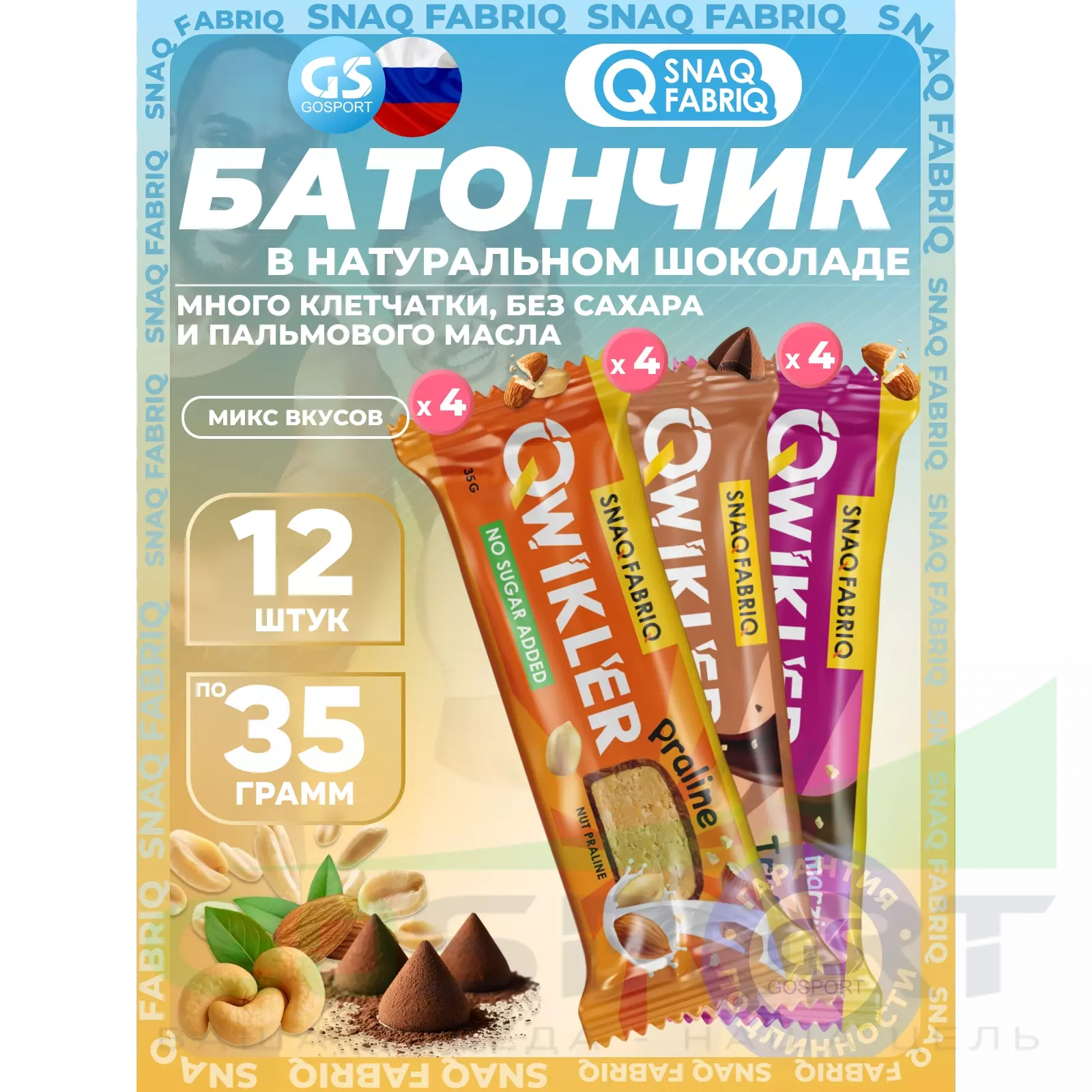 SNAQ FABRIQ Шоколадный батончик QWIKLER 12 x 35 г, Микс 1 — Полезный перекус и поддержка диеты